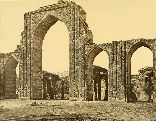 Keywords: MasjidArch.jpg Masjid-i-Kutb-il-Islam http //archive org/stream/architectureofan00cole page/n106/mode/1up Hardy Henry Col 1872 The architecture of ancient Delhi Arundel Society London 1872 Text Col Henry Hardy Photography Mr Charles Shepherd of Bourne Shepherd pd-old Historical images of the Qutb Minar and its monuments 1872 in Delhi |
