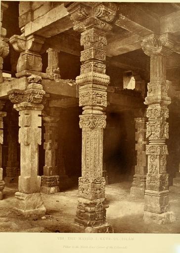 Keywords: MasjidPillars4.jpg Masjid-i-Kutb-il-Islam - Pillars http //archive org/stream/architectureofan00cole page/n98/mode/1up Hardy Henry Col 1872 The architecture of ancient Delhi Arundel Society London 1872 Text Col Henry Hardy Photography Mr Charles Shepherd of Bourne Shepherd pd-old Historical images of the Qutb Minar and its monuments 1872 in Delhi |