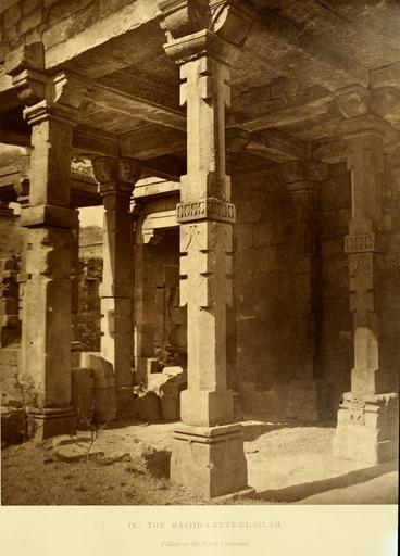 Keywords: MasjidPillars5.jpg Masjid-i-Kutb-il-Islam - Pillars http //archive org/stream/architectureofan00cole page/n102/mode/1up Hardy Henry Col 1872 The architecture of ancient Delhi Arundel Society London 1872 Text Col Henry Hardy Photography Mr Charles Shepherd of Bourne Shepherd pd-old Historical images of the Qutb Minar and its monuments 1872 in Delhi |