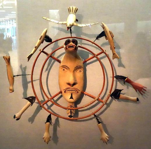 | View Original: | Mask, Alaska, Nunivak Island, Eskimo, Cup'ik, c. 1915, wood, cormorant feathers, sinew, pigment - De Young Museum - DSC00297.JPG (3686x3641) | |||