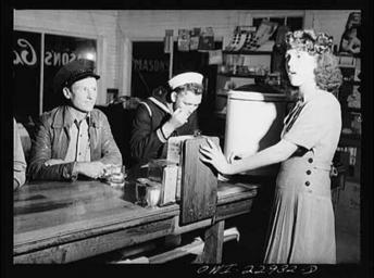 MAKE A MEME View Large Image MasonsCafeVachon.jpg Truck driver sailor and waitress at a highway coffee shop on U S Highway 90 in southern Louisiana 1943 Photograph by John Vachon via Library of Congress website at http //lcweb2 loc gov/cgi-bin/query/h pp/PPALL field ...