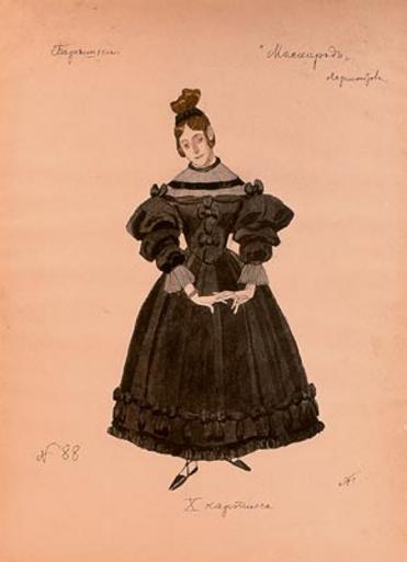Keywords: Masquerade by Golovin - Baryshnia 9 (1917, Bakhrushin museum).jpg ru Эскиз к постановке д амы Ле монтова « аска ад» 1917 http //bakhrushin-backup theatre ru/collection/sceneries/photo131 html A Golovin other versions PD-old-70-1923 Files uploaded by Shakko from various sources Masquerade by Golovin black clothing in art female Mourning women in art