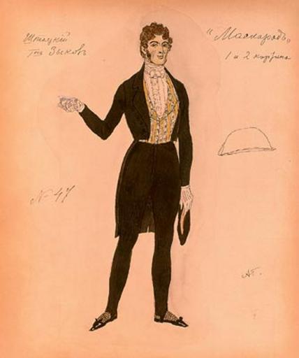 | Keywords: Masquerade by Golovin - Civilian (1917, Bakhrushin museum).jpg ru Эскиз к постановке д амы Ле монтова « аска ад» 1917 http //bakhrushin-backup theatre ru/collection/sceneries/photo131 html A Golovin other versions PD-old-70-1923 Files uploaded by Shakko from various sources Masquerade by Golovin White tie |