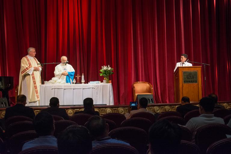 | Keywords: auditorium indoor music concert group performance hall AoS organised a Mass on board cruise ship MS Queen Victoria on September 17th in Civitavecchia, Rome. Mass was celebrated by Fr Bruno Ciceri from AoS Rome and Reverend Roger Stone from AoS port chaplain for the South Coast of England. AoS organised a Mass on board cruise ship MS Queen Victoria on September 17th in Civitavecchia, Rome. Mass was celebrated by Fr Bruno Ciceri from AoS Rome and Reverend Roger Stone from AoS port chaplain for the South Coast of England. |
