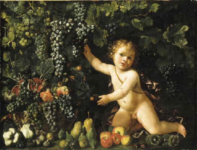 | Keywords: Master of the Acquavella Still Life - Grapes on the vine, pomegranates, grapes, and rosehips in a basket with other fruit by a putto.jpg Artwork Creator Master Of The Acquavella Still-Life Grapes on the vine pomegranates grapes and rosehips in a basket with other fruit by a putto Oil on canvas 94 5 x 124 3 cm Gallery Location http //www artnet de/Artists/LotDetailPage aspx lot_id 41343379CD4F0E41 Other versions PD-old-100 Master of the Acquavella Still-Life Grapes on the vine pomegranates grapes and rosehips in a basket with other fruit by a putto 17th-century paintings location missing 17th-century oil on canvas paintings 17th-century paintings of putti Paintings of people with grapes Pomegranates in paintings Uploads by Mattes from external sources Images from Artnet com |