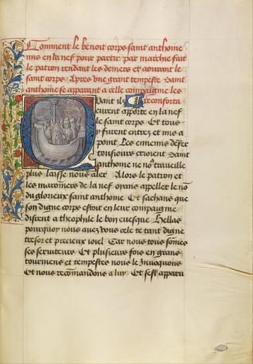 | Keywords: Master of the Brussels Romuléon or workshop (Flemish) - Initial Q- Saint Anthony Reassuring Bishop Theophile and His Companions During a Great Storm - Google Art Project.jpg Master 6805561 of the Brussels Romuléon or workshop Flemish Flemish /collection/the-j-paul-getty-museum/artwork/initial-q-saint-anthony-reassuring-bishop-theophile-and-his-companions-during-a-great-storm-master-of-the-brussels-romuleon-or-workshop-flemish/6819599/ Master of the Brussels Romuléon or workshop Flemish illuminator /artist/master-of-the-brussels-romuleon-or-workshop-flemish/6805563/ 6805563 /collection/the-j-paul-getty-museum/ The J Paul Getty Museum 343005 http //www getty edu/museum 3/12/2012 4 42 15 PM /collection/the-j-paul-getty-museum/artwork/initial-q-saint-anthony-reassuring-bishop-theophile-and-his-companions-during-a-great-storm-master-of-the-brussels-romuleon-or-workshop-flemish/6819599/ 1465 about 1465 - 1470 Tempera colors gold leaf gold paint and ink on parchment 248 6819599 True 1470 3/25/2012 10 58 52 AM lido getty edu-gm-obj4408 http //www getty edu/art/gettyguide/artObjectDetails artobj 4408 http //www getty edu/legal/copyright html Folio 1460 1480 Brussels Belgium Creation w176 x h248 cm about 1465 - 1470 False 0 697265625 Part initial-q-saint-anthony-reassuring-bishop-theophile-and-his-companions-during-a-great-storm-master-of-the-brussels-romuleon-or-workshop-flemish Initial Q Saint Anthony Reassuring Bishop Theophile and His Companions During a Great Storm i 176 Tempera colors gold leaf gold paint and ink on parchment http //www getty edu/legal/copyright html special url_id FAHlpjWZ2gxs3Q PD-old-100 Google Art Project works by Master of the Brussels Romuléon or workshop MS LUDWIG XI 8 Getty museum - The Discovery and Translation of the Body of Saint Anthony |