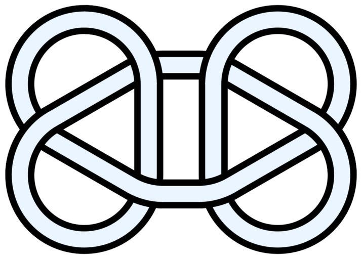 Keywords: Math-square-knot-6crossings.svg Single-closed-loop version of the square knot of practical knot-tying The two-closed-loop version of the square knot is two disconnected unlinked simple closed loops Self-made file generated from the following PostScript vector source code <pre> 150 515 translate 90 rotate/z 20000 sqrt def 25 setlinewidth 92 96 1 setrgbcolor z 2 div 15000 sqrt 300 sub 100 360 330 arcn 0 -300 100 330 90 arcn z -300 100 90 210 arcn z 2 div 15000 sqrt 300 sub 100 210 180 arcn z 2 div 15000 sqrt neg 100 180 150 arcn z 0 100 150 270 arcn 0 0 100 270 30 arcn z 2 div 15000 sqrt neg 100 30 0 arcn closepath gsave 45 setlinewidth 0 setgray stroke grestore stroke 45 setlinewidth 0 setgray 0 -300 100 329 271 arcn stroke z -300 100 89 31 arcn stroke z 2 div 15000 sqrt 300 sub 100 209 181 arcn stroke z 0 100 359 271 arcn stroke 0 0 100 89 31 arcn stroke z 2 div 15000 sqrt neg 100 179 151 arcn stroke 25 setlinewidth 92 96 1 setrgbcolor 0 -300 100 330 270 arcn stroke z -300 100 90 30 arcn stroke z 2 div 15000 sqrt 300 sub 100 210 180 arcn stroke z 0 100 360 270 arcn stroke 0 0 100 90 30 arcn stroke z 2 div 15000 sqrt neg 100 180 150 arcn stroke showpage EOF</pre> 2010 AnonMoos See File Math-granny-knot-6crossings svg Square knots knot theory Images with PostScript source code Knots and links on transparent background Outline knots and links