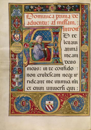 | Keywords: Matteo da Milano (Italian, active 1492 - 1523) - Initial A- King David - Google Art Project.jpg commons date commons medium commons dimensions commons institution Institution Getty Center commons location commons references commons object_history commons exhibition_history commons credit_line commons inscriptions commons notes commons accession_number commons source http //www getty edu/art/gettyguide/artObjectDetails artobj 256309 commons permission commons other_versions commons zoom core title Initial A King David core date dateCreated 1520 core location locationCreated Rome Italy core format w23 4 x h33 6 cm core type Folio core relation http //www getty edu/art/gettyguide/artObjectDetails artobj 256309 core rights http //www getty edu/legal/copyright html core format medium Tempera and gold on parchment art artist_date 1492/1523 art artist_nationality Italian c-01c9b990 customtext terms_of_use http //www getty edu/legal/copyright html c-01c9b990 customtext subject David king of Israel David c-01c9b990 creator illuminator Matteo da Milano Italian active 1492 - 1523 google display_date 1520 google is_artproject TRUE google is_gigapixel FALSE google is_secured TRUE google partner/id 0000000001c9b990 google picasa_token eIMapJj7_Xnkiovv8Uq4KxZXyKA special url_id jAHX_0C6c20Ulg google partner/name The J Paul Getty Museum special partner/name_no_lang The J Paul Getty Museum PD-old-100-1923 1523 Google Art Project works by Matteo da Milano MS 87 Getty museum - Missal by Matteo da Milano David in miniature A as an initial Introit Ad te levavi |