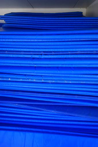 Keywords: matting blue sleeping mats material deck chair requirements deck-chair mats stack stacked sorted cleaned up mat stack