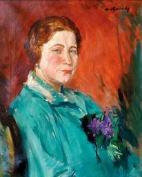 | Keywords: Mattyasovszky - Lady in a green blouse.jpg Zöld blúzos hölgy Lady in a green blouse Oil on canvas 62x51cm private collection http //www parisigaleria hu/content/download/Aukcios_katalogus_2013_dec_uj2 pdf PÁRISI GALÉRIA MŰVÉSZETI SZALON ÉS AUKCIÓSHÁZ Budapest before the auction on 2013-12-05 Creator László Mattyasovszky-Zsolnay PD-old-auto 1935 Other versions Commonist László Mattyasovszky-Zsolnay Parisian Gallery Art Salon and Auction House Budapest Green clothing in art female Paintings of women with flowers Paintings with signatures upper right Women facing right and looking at viewer in art Portrait paintings of sitting women |