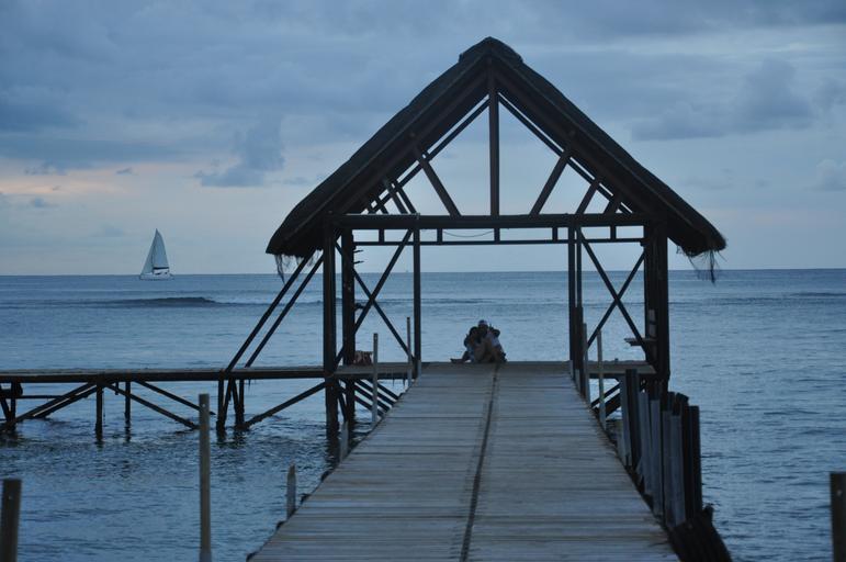Keywords: mauritius cabin couple evening sea pontoon island east africa