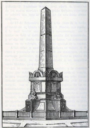 | Keywords: Mausoleo 3.jpg es Un dibujo del mausoleo intercalado en las págs 276-277 de la obra de Nicasio Camilo Jover Reseña histórica de la ciudad de Alicante 1863 Reseña histórica de la ciudad de Alicante 1863 Nicasio Camilo Jover Author 1863 PD-old Check categories 2009 March 26 es wikipedia Trinitario_González_de_Quijano 3 Monuments and memorials to politicians in Spain Historical images of Alacant Obelisks in the Land of Valencia | ||||