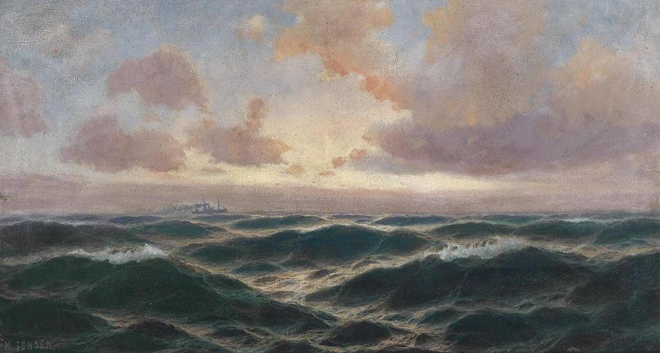 | Keywords: Max Jensen - Maritime Szene (1908).jpg Max Jensen 1860 1908 Technique oil canvas panel cm 44 80 accession number object history credit line exhibition history M Jensen ~ lower left signature http //www arcadja com/auctions/de/private/jensen_max/kunstwerken/88005/0/ Palais Dorotheum 06 05 2013 lot 134 via ARCADJA auction results PD-old-100-1923 Max Jensen Oil paintings of seascapes Images from Dorotheum | ||||