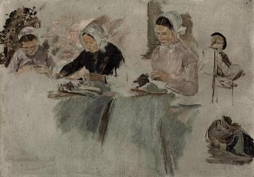 | Keywords: Max Liebermann - Brabanter Spitzenklöpplerinnen (Studie).jpg  Artwork Creator Max Liebermann 1881 oil canvas cardboard cm 24 4 34 3 object history Max Liebermann Berlin until at least 1929; - Galerie Thannhauser Berlin no 3783 ; - Dr Mrs Walter Buchler Braunschweig by whom acquired from the above in May 1935 and thence by descent exhibition history Berlin Königliche Akademie der Künste Max Liebermann 70 Geburtstag July - August 1917 no 57 <br/>Zürich Kunsthaus Max Liebermann June - July 1923 no 18 <br/> possibly Hamburg Kunstverein Max Liebermann November - December 1926 no 8 <br/>Vienna Künstlerhaus 50 Jahresausstellung der Genossenschaft der Bildenden Künstler Wiens mit Ausstellung Max Liebermann March - May 1929 no 108 <br/>Hanover Landesgalerie Max Liebermann 1847-1935 1954 n n ; this exhibition later travelled to Bremen Kunsthalle no 22 credit line 'MLiebermann 81' ~ lower left signature and date accession number christies online 5334012 PD-old-auto-1923 1935 1880s paintings by Max Liebermann |