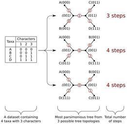 Keywords: Maximal parsimony unroot tree.svg en The idea of maximal parsimony analysis 2013-01-15 20 28 12 own Chen-Pan Liao created with Inkscape cc-zero Uploaded with UploadWizard Phylogenetic trees
