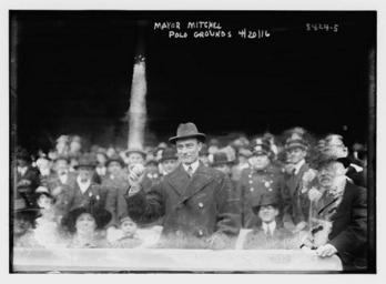 | Keywords: Mayor John P. Mitchel at Polo Grounds.jpg en w John Purroy Mitchel the w Mayor of New York throwing out the w ceremonial first pitch at the w Opening Day game of the w 1916 New York Giants season at the the Polo Grounds on April 20 1916 Library of Congress Prints and Photographs Division LC-DIG-ggbain-21539 digital file from original negative Bain News Service publisher 1916-04-20 PD-US LOC-image ggbain 21539 PD-Bain John Purroy Mitchel Polo Grounds Politicians with people Ceremonial first pitch 1916 New York Giants season |