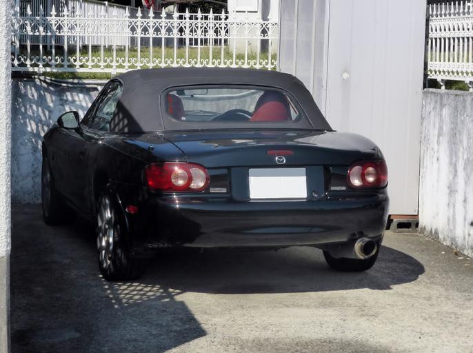 Keywords: Mazda Roadster (NB) rear.JPG ja NB型マツム・ãƒãƒ¼ãƒ‰ã‚¹ã‚¿ãƒ¼ã‚’リアã‹ã‚‰æ’®å½±ã ‚ 2013-10-14 10 49 54 own Tokumeigakarinoaoshima cc-zero Uploaded with UploadWizard Mazda Roadster NB