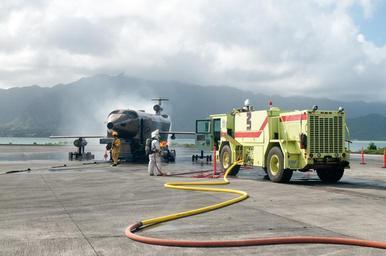 Keywords: MCAS turns up the heat for emergency training 111221-D-RT812-190.jpg en Firefighters from Aircraft Rescue Firefighting facility battle flames with their P-15 fire truck while fighting a simulated fire during a training exercise at Marine Corps Air Station Kaneohe Bay Dec 21 The exercise tested the response from firefighters and from other emergency personnel by simulating an aircraft mid-air collision 2011-12-21 Christine Cabalo https //www dvidshub net/image/504149 111221-D-RT812-190 2011-12-27 21 29 MARINE CORPS BASE HAWAII HI US PD-USGov Marine Corps Base Hawaii Firefighting training Images from DoD uploaded by Fæ |