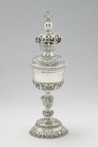 Keywords: MCC-19139 Ciborie op ronde voet, met drie cherubskopjes op eivormige nodus (1).tif Artwork nl G van der Lely nl CIBORIE Leeuwarden G van der Lelie 1725-1750 ABM m1227 In een ciborie worden de hosties het heilig brood bewaard die na afloop van de dienst in een katholieke kerk zijn overgebleven ciborium Leeuwarden G van der Lelie 1725-1750 ABM m1227 In a ciborium the hosts the sacred bread are kept after the religious service in a Catholic church between 1731 1754 nl zilver goud Size 29 0 cm nl Hoogte 29 0cm Diameter 9 5cm Institution Museum Catharijneconvent object history exhibition history credit line nl Foto Museum Catharijneconvent Utrecht foto Ruben de Heer accession number Object number 19139 Inventory number ABM m01227 place of creation https //www catharijneconvent nl/adlib/19139/ View this work on the website of Museum Catharijneconvent Museum Catharijneconvent Cc-zero <gallery> File MCC-19139_Ciborie_op_ronde_voet _met_drie_cherubskopjes_op_eivormige_nodus_ 1 tif </gallery> Ciboria in the Netherlands |