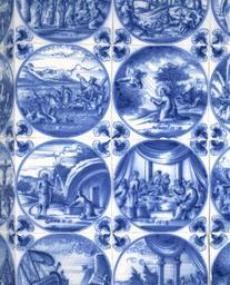 | Keywords: MCC-40823 Smuiger, 278 tegels met anjers en medaillons met bijbelse voorstellingen naar Jan Luyken (2).tif Artwork nl Anonymous Amsterdam nl EEN SMUIGER MET BIJBELTEGELS NAAR JAN LUIKEN Amsterdam 1789 RMCC v127 Een smuiger is een tegelschouw waarvan de achterwand aan de bovenkant naar voren welft Dit soort schouwen treft men aan in de Zaanstreek Deze komt uit een huis van een beurtschipper in Zaandijk In de smuiger bevinden zich 278 bijbeltegels geschilderd naar de bijbelprenten uit Jan Luiken's `Schriftelijke Geschiedenissen en Gelijkenissen' Amsterdam 1712 Er zijn 108 tegels met voorstellingen uit het Oude Testament en 112 uit het Nieuwe Testament De overige 58 tegels zijn dubbelexemplaren Bij het zetten van de tegels in de schouw werd niet de volgorde van het bijbelverhaal aangehouden Mede door de gedetailleerde voorstellingen van de tegels kan deze smuiger uniek genoemd worden 1786 nl aardewerk Size 135 0 181 0 cm nl Hoogte 135 0cm Breedte 181 0cm Diepte 81 0cm Institution Museum Catharijneconvent object history exhibition history credit line nl Foto Museum Catharijneconvent Utrecht foto Ruben de Heer Reproduction title nl Detail accession number Object number 40823 Inventory number RMCC v00127 place of creation https //www catharijneconvent nl/adlib/40823/ View this work on the website of Museum Catharijneconvent Museum Catharijneconvent Cc-zero <gallery> File MCC-40823_Smuiger _278_tegels_met_anjers_en_medaillons_met_bijbelse_voorstellingen_naar_Jan_Luyken_ 2 tif File MCC-40823_Smuiger _278_tegels_met_anjers_en_medaillons_met_bijbelse_voorstellingen_naar_Jan_Luyken_ 1 tif </gallery> Ceramic tiles Jan Luyken |