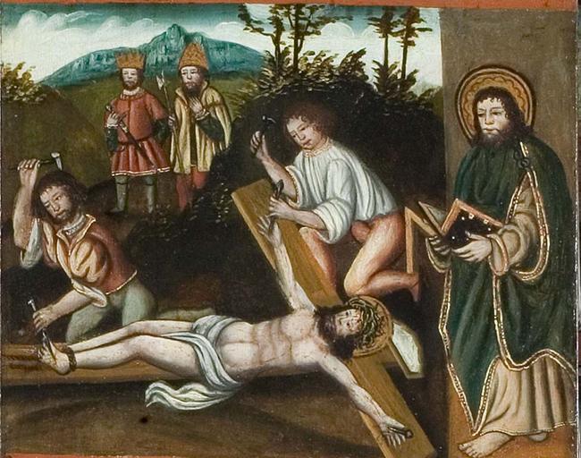 | Keywords: MCC-42054 Veelluik met het martelaarschap van de H. Theodosia (49).jpg Artwork nl Anonymous Gelre nl Middenstuk 1 Theodosia verzoekt toelating tot de gevangenis Rechtsboven een engel met banderol waarop de tekst Ghi sijt verhoert die geve die ghi do bidt heb ick gevestigt mit mijnen gelt die martelie te liden 2 Theodosia wordt bij de magistraat ter verantwoording geroepen Op het tekstbord Desen s alch sal ick mitter hulpen des heren voer s en 3 Theodosia ™s marteling aan de hefboom Op het tekstbord Ic ben bereyd dinc voer iezus christo te liden 4a Theodosia aan de schandpaal 4b Theodosia ™s ledematen worden uitgerekt 5 Allegorische voorstelling Christus aan het kruis met het offerlam op zijn schouders; onder het kruis negen schapen Op de voorgrond links een non rechts koning David met een gouden kroon op zijn hoofd en een herdersstaf met schep in beide handen die hij naar de non uitsteekt; tussen hen in ligt een harp Op het tekstbord suster hoede die scapen dier gedacten in die minne des brudegoms iesus opten berch caluarie 6a Theodosia uit het water gered door twee engelen 6b Vijf nonnen en een vrouw in wereldse kledij bezoeken Theodosia in de gevangenis Op het tekstbord min medes elen in cro Christo den enge w ech Het opschrift op de lijst onder de voorstelling is onleesbaar 7 Theodosia voor de wilde dieren geworpen Op het tekstbord nu suldi bekennen hoe vol si vermogen die god mit pueren herten minnen 8 Onthoofding van Theodosia Op het tekstbord dat ic inren tiit des vreden heb vercregen dat sal ic inden striit nie verliesen 9a Verschijning van Theodosia aan haar ouders Op het tekstbord sieh hoe soet die glorie ist daer du mi af beroeven wolste 9b Begrafenis van Theodosia Een zwevende engel met banderol waarop si heft nu salighe vrocht Aan weerszijden van deze taferelen zijn vrouwelijke heiligen afgebeeld steeds twee aan twee met tussen hen in een geknielde non Op de eerste voorstelling links in plaats van een vrouwelijke heilige Maria met kind Links 10a Madonna op de maansikkel en Fides Opschriften / fides 10b Caritas en Spes Opschriften niet leesbaar 11a Agatha en Dorothea Opschriften aghata / doratea 11b Apollonia met attribuut van Agatha tang waarin in plaats van een tand een borst is geklemd en Euphrosia Opschriften appolonia / effrosia 12a Anatolia en Christina Opschriften anatolia / 12b Victoria en Sophia Opschriften victoria / sophia Rechts 13a Margaretha en Gertrudis Opschriften a gretha / gertrudis 13b Ursula en Walburga Opschriften ursula / 14a Catharina en Barbara Opschriften katrina / barbara 14b Agnes en Prisca Opschriften agneta / priska 15a Cecilia en Cunera Opschriften cecilia / cunera 15b Lucia en Clara Opschriften lucia / clara Binnenzijde linkerluiken 16 Kruisdraging met Veronica en Simon van Cyrene 17 Doornenkroning Rechts een als priester geklede heilige met een kelk in de hand en een knielende non 18 Geseling Rechts een H Bisschop 19 Christus in de Hof van Olijven en de stigmatisatie van de Franciscus 20 Besnijdenis Rechts een reguliere kanunnik en een geknielde vrouw in 16de-eeuwse kledij met de attributen van de H Goedele een lantaarn geflankeerd door een engel met een brandende kaars en een duivel met een blaasbalg; daaronder het opschrift gudila 21 Ontkleding van Christus Rechts een heilige met een boek en een ladder 22 Kruisnageling Rechts de apostel Thomas 23 Christus aan het kruis met Maria Johannes en de drie vrouwen Rechts Antonius 24 Bewening Rechts de apostel Paulus en twee geknielde nonnen 25 Christus treedt de wijnpers Links Augustinus rechts een reguliere kanunnik Binnenzijde rechterluiken 26 Aanbidding der koningen 27 Geboorte van Christus Opschrift gloria in excelsis 28a Visitatie 28b Vier nonnen knielend voor een altaar waarop een drieluik met de Kruisiging Achter hen een priester Boven diens hoofd h ia Rechts daarvan een banderol met eenregelige tekst van een lied adv i g i I Fi Filius dn domini 29 Annunciatie Opschrift ave gratia plena 30 Genadestoel Rechtsonder op de voorgrond knielt een non Op het tekstbord god die alle creatueren gescapen heft en ons mit sin dierbaren bloet verlost heft hi wil ock sin gracie geuen ge eit v an der oude naam van de stichtster-non 31 Christus verschijnt aan Maria 32 Hemelvaart van Christus 33 Kroning van Maria 34 Allegorische voorstelling God de Vader gezeten op een troon met op de trappen die naar de troon voeren links de vijf wijze rechts de vijf dwaze maagden; in het midden een engel boven de hellemond met drie verdoemden Op de banderol in de linkerhand van de engel Gae t of Myt ghi vermadi vermaledijden ; op de banderol in zijn rechterhand coemt ghi gebenedide Op het tekstbord bij de wijze maagden gaet tot der gene daer se te coop is Op het tekstbord bij de dwaze maagden geft ons den olie vor ons lamp Op de banderol aan de onderzijde van de voorstelling rick der hemelen sal worden all fiere maechden Buitenzijde linkerluiken Nr 35 36 en 40 t/m 44 zijn gewijd aan de zeven vallen van Christus De voorstellingen zijn zeer verwant aan zeven houtsneden met dit thema gedrukt op één blad getiteld ˜O mensch betracht dy siben vell Christi und dy siben herzenlaydt Marie ™ Wenen Albertina inv nr 1930-70 Zuid-Duitsland ca 1480; zie Marrow 1979 p 82 89 100 106 131 170 pl VIII 35 Christus ™ val voor de kruisnageling zesde val 36 Kruisoprichting zevende val 37 Allegorische voorstelling Christus als Man van Smarten en gebonden aan de geselpaal houdt een rood koord vast dat verbonden is met een knielende non Tekstrol Christus o dochter vollighet my want ic gepassijt bin voor di wilt mij u hert geven om ewich te leuen Tekstrol non here ic offer u myn hert nu ende inder ewicheit Achter de non zeven kleinere opschriften verwijzend naar zeven deugden elk voorafgegaan door een hand met een geselroede waarvan de eerste en de derde onleesbaar zijn 2 die mel it mildheid ; 4 gehoorsamheijt; 5 wakinge; 6 silencia ; 7 arheyt waarheid 38 Allegorische voorstelling In een ommuurde tuin slaat Christus met een hamer o
