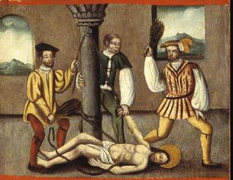 | Keywords: MCC-42054 Veelluik met het martelaarschap van de H. Theodosia (69).jpg Artwork nl Anonymous Gelre nl Middenstuk 1 Theodosia verzoekt toelating tot de gevangenis Rechtsboven een engel met banderol waarop de tekst Ghi sijt verhoert die geve die ghi do bidt heb ick gevestigt mit mijnen gelt die martelie te liden 2 Theodosia wordt bij de magistraat ter verantwoording geroepen Op het tekstbord Desen s alch sal ick mitter hulpen des heren voer s en 3 Theodosia ™s marteling aan de hefboom Op het tekstbord Ic ben bereyd dinc voer iezus christo te liden 4a Theodosia aan de schandpaal 4b Theodosia ™s ledematen worden uitgerekt 5 Allegorische voorstelling Christus aan het kruis met het offerlam op zijn schouders; onder het kruis negen schapen Op de voorgrond links een non rechts koning David met een gouden kroon op zijn hoofd en een herdersstaf met schep in beide handen die hij naar de non uitsteekt; tussen hen in ligt een harp Op het tekstbord suster hoede die scapen dier gedacten in die minne des brudegoms iesus opten berch caluarie 6a Theodosia uit het water gered door twee engelen 6b Vijf nonnen en een vrouw in wereldse kledij bezoeken Theodosia in de gevangenis Op het tekstbord min medes elen in cro Christo den enge w ech Het opschrift op de lijst onder de voorstelling is onleesbaar 7 Theodosia voor de wilde dieren geworpen Op het tekstbord nu suldi bekennen hoe vol si vermogen die god mit pueren herten minnen 8 Onthoofding van Theodosia Op het tekstbord dat ic inren tiit des vreden heb vercregen dat sal ic inden striit nie verliesen 9a Verschijning van Theodosia aan haar ouders Op het tekstbord sieh hoe soet die glorie ist daer du mi af beroeven wolste 9b Begrafenis van Theodosia Een zwevende engel met banderol waarop si heft nu salighe vrocht Aan weerszijden van deze taferelen zijn vrouwelijke heiligen afgebeeld steeds twee aan twee met tussen hen in een geknielde non Op de eerste voorstelling links in plaats van een vrouwelijke heilige Maria met kind Links 10a Madonna op de maansikkel en Fides Opschriften / fides 10b Caritas en Spes Opschriften niet leesbaar 11a Agatha en Dorothea Opschriften aghata / doratea 11b Apollonia met attribuut van Agatha tang waarin in plaats van een tand een borst is geklemd en Euphrosia Opschriften appolonia / effrosia 12a Anatolia en Christina Opschriften anatolia / 12b Victoria en Sophia Opschriften victoria / sophia Rechts 13a Margaretha en Gertrudis Opschriften a gretha / gertrudis 13b Ursula en Walburga Opschriften ursula / 14a Catharina en Barbara Opschriften katrina / barbara 14b Agnes en Prisca Opschriften agneta / priska 15a Cecilia en Cunera Opschriften cecilia / cunera 15b Lucia en Clara Opschriften lucia / clara Binnenzijde linkerluiken 16 Kruisdraging met Veronica en Simon van Cyrene 17 Doornenkroning Rechts een als priester geklede heilige met een kelk in de hand en een knielende non 18 Geseling Rechts een H Bisschop 19 Christus in de Hof van Olijven en de stigmatisatie van de Franciscus 20 Besnijdenis Rechts een reguliere kanunnik en een geknielde vrouw in 16de-eeuwse kledij met de attributen van de H Goedele een lantaarn geflankeerd door een engel met een brandende kaars en een duivel met een blaasbalg; daaronder het opschrift gudila 21 Ontkleding van Christus Rechts een heilige met een boek en een ladder 22 Kruisnageling Rechts de apostel Thomas 23 Christus aan het kruis met Maria Johannes en de drie vrouwen Rechts Antonius 24 Bewening Rechts de apostel Paulus en twee geknielde nonnen 25 Christus treedt de wijnpers Links Augustinus rechts een reguliere kanunnik Binnenzijde rechterluiken 26 Aanbidding der koningen 27 Geboorte van Christus Opschrift gloria in excelsis 28a Visitatie 28b Vier nonnen knielend voor een altaar waarop een drieluik met de Kruisiging Achter hen een priester Boven diens hoofd h ia Rechts daarvan een banderol met eenregelige tekst van een lied adv i g i I Fi Filius dn domini 29 Annunciatie Opschrift ave gratia plena 30 Genadestoel Rechtsonder op de voorgrond knielt een non Op het tekstbord god die alle creatueren gescapen heft en ons mit sin dierbaren bloet verlost heft hi wil ock sin gracie geuen ge eit v an der oude naam van de stichtster-non 31 Christus verschijnt aan Maria 32 Hemelvaart van Christus 33 Kroning van Maria 34 Allegorische voorstelling God de Vader gezeten op een troon met op de trappen die naar de troon voeren links de vijf wijze rechts de vijf dwaze maagden; in het midden een engel boven de hellemond met drie verdoemden Op de banderol in de linkerhand van de engel Gae t of Myt ghi vermadi vermaledijden ; op de banderol in zijn rechterhand coemt ghi gebenedide Op het tekstbord bij de wijze maagden gaet tot der gene daer se te coop is Op het tekstbord bij de dwaze maagden geft ons den olie vor ons lamp Op de banderol aan de onderzijde van de voorstelling rick der hemelen sal worden all fiere maechden Buitenzijde linkerluiken Nr 35 36 en 40 t/m 44 zijn gewijd aan de zeven vallen van Christus De voorstellingen zijn zeer verwant aan zeven houtsneden met dit thema gedrukt op één blad getiteld ˜O mensch betracht dy siben vell Christi und dy siben herzenlaydt Marie ™ Wenen Albertina inv nr 1930-70 Zuid-Duitsland ca 1480; zie Marrow 1979 p 82 89 100 106 131 170 pl VIII 35 Christus ™ val voor de kruisnageling zesde val 36 Kruisoprichting zevende val 37 Allegorische voorstelling Christus als Man van Smarten en gebonden aan de geselpaal houdt een rood koord vast dat verbonden is met een knielende non Tekstrol Christus o dochter vollighet my want ic gepassijt bin voor di wilt mij u hert geven om ewich te leuen Tekstrol non here ic offer u myn hert nu ende inder ewicheit Achter de non zeven kleinere opschriften verwijzend naar zeven deugden elk voorafgegaan door een hand met een geselroede waarvan de eerste en de derde onleesbaar zijn 2 die mel it mildheid ; 4 gehoorsamheijt; 5 wakinge; 6 silencia ; 7 arheyt waarheid 38 Allegorische voorstelling In een ommuurde tuin slaat Christus met een hamer o