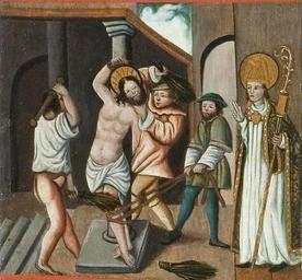 | Keywords: MCC-42054 Veelluik met het martelaarschap van de H. Theodosia (45).jpg Artwork nl Anonymous Gelre nl Middenstuk 1 Theodosia verzoekt toelating tot de gevangenis Rechtsboven een engel met banderol waarop de tekst Ghi sijt verhoert die geve die ghi do bidt heb ick gevestigt mit mijnen gelt die martelie te liden 2 Theodosia wordt bij de magistraat ter verantwoording geroepen Op het tekstbord Desen s alch sal ick mitter hulpen des heren voer s en 3 Theodosia ™s marteling aan de hefboom Op het tekstbord Ic ben bereyd dinc voer iezus christo te liden 4a Theodosia aan de schandpaal 4b Theodosia ™s ledematen worden uitgerekt 5 Allegorische voorstelling Christus aan het kruis met het offerlam op zijn schouders; onder het kruis negen schapen Op de voorgrond links een non rechts koning David met een gouden kroon op zijn hoofd en een herdersstaf met schep in beide handen die hij naar de non uitsteekt; tussen hen in ligt een harp Op het tekstbord suster hoede die scapen dier gedacten in die minne des brudegoms iesus opten berch caluarie 6a Theodosia uit het water gered door twee engelen 6b Vijf nonnen en een vrouw in wereldse kledij bezoeken Theodosia in de gevangenis Op het tekstbord min medes elen in cro Christo den enge w ech Het opschrift op de lijst onder de voorstelling is onleesbaar 7 Theodosia voor de wilde dieren geworpen Op het tekstbord nu suldi bekennen hoe vol si vermogen die god mit pueren herten minnen 8 Onthoofding van Theodosia Op het tekstbord dat ic inren tiit des vreden heb vercregen dat sal ic inden striit nie verliesen 9a Verschijning van Theodosia aan haar ouders Op het tekstbord sieh hoe soet die glorie ist daer du mi af beroeven wolste 9b Begrafenis van Theodosia Een zwevende engel met banderol waarop si heft nu salighe vrocht Aan weerszijden van deze taferelen zijn vrouwelijke heiligen afgebeeld steeds twee aan twee met tussen hen in een geknielde non Op de eerste voorstelling links in plaats van een vrouwelijke heilige Maria met kind Links 10a Madonna op de maansikkel en Fides Opschriften / fides 10b Caritas en Spes Opschriften niet leesbaar 11a Agatha en Dorothea Opschriften aghata / doratea 11b Apollonia met attribuut van Agatha tang waarin in plaats van een tand een borst is geklemd en Euphrosia Opschriften appolonia / effrosia 12a Anatolia en Christina Opschriften anatolia / 12b Victoria en Sophia Opschriften victoria / sophia Rechts 13a Margaretha en Gertrudis Opschriften a gretha / gertrudis 13b Ursula en Walburga Opschriften ursula / 14a Catharina en Barbara Opschriften katrina / barbara 14b Agnes en Prisca Opschriften agneta / priska 15a Cecilia en Cunera Opschriften cecilia / cunera 15b Lucia en Clara Opschriften lucia / clara Binnenzijde linkerluiken 16 Kruisdraging met Veronica en Simon van Cyrene 17 Doornenkroning Rechts een als priester geklede heilige met een kelk in de hand en een knielende non 18 Geseling Rechts een H Bisschop 19 Christus in de Hof van Olijven en de stigmatisatie van de Franciscus 20 Besnijdenis Rechts een reguliere kanunnik en een geknielde vrouw in 16de-eeuwse kledij met de attributen van de H Goedele een lantaarn geflankeerd door een engel met een brandende kaars en een duivel met een blaasbalg; daaronder het opschrift gudila 21 Ontkleding van Christus Rechts een heilige met een boek en een ladder 22 Kruisnageling Rechts de apostel Thomas 23 Christus aan het kruis met Maria Johannes en de drie vrouwen Rechts Antonius 24 Bewening Rechts de apostel Paulus en twee geknielde nonnen 25 Christus treedt de wijnpers Links Augustinus rechts een reguliere kanunnik Binnenzijde rechterluiken 26 Aanbidding der koningen 27 Geboorte van Christus Opschrift gloria in excelsis 28a Visitatie 28b Vier nonnen knielend voor een altaar waarop een drieluik met de Kruisiging Achter hen een priester Boven diens hoofd h ia Rechts daarvan een banderol met eenregelige tekst van een lied adv i g i I Fi Filius dn domini 29 Annunciatie Opschrift ave gratia plena 30 Genadestoel Rechtsonder op de voorgrond knielt een non Op het tekstbord god die alle creatueren gescapen heft en ons mit sin dierbaren bloet verlost heft hi wil ock sin gracie geuen ge eit v an der oude naam van de stichtster-non 31 Christus verschijnt aan Maria 32 Hemelvaart van Christus 33 Kroning van Maria 34 Allegorische voorstelling God de Vader gezeten op een troon met op de trappen die naar de troon voeren links de vijf wijze rechts de vijf dwaze maagden; in het midden een engel boven de hellemond met drie verdoemden Op de banderol in de linkerhand van de engel Gae t of Myt ghi vermadi vermaledijden ; op de banderol in zijn rechterhand coemt ghi gebenedide Op het tekstbord bij de wijze maagden gaet tot der gene daer se te coop is Op het tekstbord bij de dwaze maagden geft ons den olie vor ons lamp Op de banderol aan de onderzijde van de voorstelling rick der hemelen sal worden all fiere maechden Buitenzijde linkerluiken Nr 35 36 en 40 t/m 44 zijn gewijd aan de zeven vallen van Christus De voorstellingen zijn zeer verwant aan zeven houtsneden met dit thema gedrukt op één blad getiteld ˜O mensch betracht dy siben vell Christi und dy siben herzenlaydt Marie ™ Wenen Albertina inv nr 1930-70 Zuid-Duitsland ca 1480; zie Marrow 1979 p 82 89 100 106 131 170 pl VIII 35 Christus ™ val voor de kruisnageling zesde val 36 Kruisoprichting zevende val 37 Allegorische voorstelling Christus als Man van Smarten en gebonden aan de geselpaal houdt een rood koord vast dat verbonden is met een knielende non Tekstrol Christus o dochter vollighet my want ic gepassijt bin voor di wilt mij u hert geven om ewich te leuen Tekstrol non here ic offer u myn hert nu ende inder ewicheit Achter de non zeven kleinere opschriften verwijzend naar zeven deugden elk voorafgegaan door een hand met een geselroede waarvan de eerste en de derde onleesbaar zijn 2 die mel it mildheid ; 4 gehoorsamheijt; 5 wakinge; 6 silencia ; 7 arheyt waarheid 38 Allegorische voorstelling In een ommuurde tuin slaat Christus met een hamer o