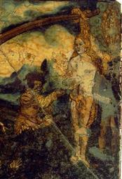 | Keywords: MCC-42054 Veelluik met het martelaarschap van de H. Theodosia (12).jpg Artwork nl Anonymous Gelre nl Middenstuk 1 Theodosia verzoekt toelating tot de gevangenis Rechtsboven een engel met banderol waarop de tekst Ghi sijt verhoert die geve die ghi do bidt heb ick gevestigt mit mijnen gelt die martelie te liden 2 Theodosia wordt bij de magistraat ter verantwoording geroepen Op het tekstbord Desen s alch sal ick mitter hulpen des heren voer s en 3 Theodosia ™s marteling aan de hefboom Op het tekstbord Ic ben bereyd dinc voer iezus christo te liden 4a Theodosia aan de schandpaal 4b Theodosia ™s ledematen worden uitgerekt 5 Allegorische voorstelling Christus aan het kruis met het offerlam op zijn schouders; onder het kruis negen schapen Op de voorgrond links een non rechts koning David met een gouden kroon op zijn hoofd en een herdersstaf met schep in beide handen die hij naar de non uitsteekt; tussen hen in ligt een harp Op het tekstbord suster hoede die scapen dier gedacten in die minne des brudegoms iesus opten berch caluarie 6a Theodosia uit het water gered door twee engelen 6b Vijf nonnen en een vrouw in wereldse kledij bezoeken Theodosia in de gevangenis Op het tekstbord min medes elen in cro Christo den enge w ech Het opschrift op de lijst onder de voorstelling is onleesbaar 7 Theodosia voor de wilde dieren geworpen Op het tekstbord nu suldi bekennen hoe vol si vermogen die god mit pueren herten minnen 8 Onthoofding van Theodosia Op het tekstbord dat ic inren tiit des vreden heb vercregen dat sal ic inden striit nie verliesen 9a Verschijning van Theodosia aan haar ouders Op het tekstbord sieh hoe soet die glorie ist daer du mi af beroeven wolste 9b Begrafenis van Theodosia Een zwevende engel met banderol waarop si heft nu salighe vrocht Aan weerszijden van deze taferelen zijn vrouwelijke heiligen afgebeeld steeds twee aan twee met tussen hen in een geknielde non Op de eerste voorstelling links in plaats van een vrouwelijke heilige Maria met kind Links 10a Madonna op de maansikkel en Fides Opschriften / fides 10b Caritas en Spes Opschriften niet leesbaar 11a Agatha en Dorothea Opschriften aghata / doratea 11b Apollonia met attribuut van Agatha tang waarin in plaats van een tand een borst is geklemd en Euphrosia Opschriften appolonia / effrosia 12a Anatolia en Christina Opschriften anatolia / 12b Victoria en Sophia Opschriften victoria / sophia Rechts 13a Margaretha en Gertrudis Opschriften a gretha / gertrudis 13b Ursula en Walburga Opschriften ursula / 14a Catharina en Barbara Opschriften katrina / barbara 14b Agnes en Prisca Opschriften agneta / priska 15a Cecilia en Cunera Opschriften cecilia / cunera 15b Lucia en Clara Opschriften lucia / clara Binnenzijde linkerluiken 16 Kruisdraging met Veronica en Simon van Cyrene 17 Doornenkroning Rechts een als priester geklede heilige met een kelk in de hand en een knielende non 18 Geseling Rechts een H Bisschop 19 Christus in de Hof van Olijven en de stigmatisatie van de Franciscus 20 Besnijdenis Rechts een reguliere kanunnik en een geknielde vrouw in 16de-eeuwse kledij met de attributen van de H Goedele een lantaarn geflankeerd door een engel met een brandende kaars en een duivel met een blaasbalg; daaronder het opschrift gudila 21 Ontkleding van Christus Rechts een heilige met een boek en een ladder 22 Kruisnageling Rechts de apostel Thomas 23 Christus aan het kruis met Maria Johannes en de drie vrouwen Rechts Antonius 24 Bewening Rechts de apostel Paulus en twee geknielde nonnen 25 Christus treedt de wijnpers Links Augustinus rechts een reguliere kanunnik Binnenzijde rechterluiken 26 Aanbidding der koningen 27 Geboorte van Christus Opschrift gloria in excelsis 28a Visitatie 28b Vier nonnen knielend voor een altaar waarop een drieluik met de Kruisiging Achter hen een priester Boven diens hoofd h ia Rechts daarvan een banderol met eenregelige tekst van een lied adv i g i I Fi Filius dn domini 29 Annunciatie Opschrift ave gratia plena 30 Genadestoel Rechtsonder op de voorgrond knielt een non Op het tekstbord god die alle creatueren gescapen heft en ons mit sin dierbaren bloet verlost heft hi wil ock sin gracie geuen ge eit v an der oude naam van de stichtster-non 31 Christus verschijnt aan Maria 32 Hemelvaart van Christus 33 Kroning van Maria 34 Allegorische voorstelling God de Vader gezeten op een troon met op de trappen die naar de troon voeren links de vijf wijze rechts de vijf dwaze maagden; in het midden een engel boven de hellemond met drie verdoemden Op de banderol in de linkerhand van de engel Gae t of Myt ghi vermadi vermaledijden ; op de banderol in zijn rechterhand coemt ghi gebenedide Op het tekstbord bij de wijze maagden gaet tot der gene daer se te coop is Op het tekstbord bij de dwaze maagden geft ons den olie vor ons lamp Op de banderol aan de onderzijde van de voorstelling rick der hemelen sal worden all fiere maechden Buitenzijde linkerluiken Nr 35 36 en 40 t/m 44 zijn gewijd aan de zeven vallen van Christus De voorstellingen zijn zeer verwant aan zeven houtsneden met dit thema gedrukt op één blad getiteld ˜O mensch betracht dy siben vell Christi und dy siben herzenlaydt Marie ™ Wenen Albertina inv nr 1930-70 Zuid-Duitsland ca 1480; zie Marrow 1979 p 82 89 100 106 131 170 pl VIII 35 Christus ™ val voor de kruisnageling zesde val 36 Kruisoprichting zevende val 37 Allegorische voorstelling Christus als Man van Smarten en gebonden aan de geselpaal houdt een rood koord vast dat verbonden is met een knielende non Tekstrol Christus o dochter vollighet my want ic gepassijt bin voor di wilt mij u hert geven om ewich te leuen Tekstrol non here ic offer u myn hert nu ende inder ewicheit Achter de non zeven kleinere opschriften verwijzend naar zeven deugden elk voorafgegaan door een hand met een geselroede waarvan de eerste en de derde onleesbaar zijn 2 die mel it mildheid ; 4 gehoorsamheijt; 5 wakinge; 6 silencia ; 7 arheyt waarheid 38 Allegorische voorstelling In een ommuurde tuin slaat Christus met een hamer o