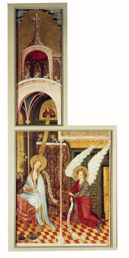 | Keywords: MCC-42339 Middelrijns altaar, annunciatie met afzonderlijk bovenstuk waarop God de Vader en vier engelen (1).tif Artwork nl Anonymous Middel-Rijn Anonymous Keulen Anonymous Westfalen nl Op de spreukband van de engel Ave gratia plena dominus tecum Gegroet begenadigde de Heer is met u Luc 1 28 Op de spreukband bij Maria Ecce ancilla domini fiat michi secundum verbum tuum Zie de dienstmaagd van de Heer mij geschiede naar uw woord Luc 1 38 between 1405 1414 nl paneel tempera olieverf linnen Size 73 0 60 0 cm nl Hoogte 73 0cm Breedte 60 0cm Institution Museum Catharijneconvent object history exhibition history credit line nl Foto Museum Catharijneconvent Utrecht foto Ruben de Heer accession number Object number 42339 Inventory number ABM s00025 01 place of creation https //www catharijneconvent nl/adlib/42339/ View this work on the website of Museum Catharijneconvent Museum Catharijneconvent Cc-zero <gallery> File MCC-42339_Middelrijns_altaar _annunciatie_met_afzonderlijk_bovenstuk_waarop_God_de_Vader_en_vier_engelen_ 1 tif File MCC-42339_Middelrijns_altaar _annunciatie_met_afzonderlijk_bovenstuk_waarop_God_de_Vader_en_vier_engelen_ 3 tif File MCC-42339_Middelrijns_altaar _annunciatie_met_afzonderlijk_bovenstuk_waarop_God_de_Vader_en_vier_engelen_ 2 tif </gallery> |
