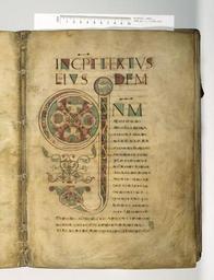 | Keywords: MCC-61050 Evangeliarium (Lebuïnuscodex) (142).jpg Artwork nl Anonymous Noordoost-Frankrijk Anonymous Rijnland Anonymous Maasland nl De kern van de boekband van de Lebuïnuscodex wordt gevormd door twee eikenhouten platten De rug en het achterplat zijn overtrokken met zeemleer Het voorplat is rijkelijk versierd met verguld zilversmeedwerk reliëfs van walrustand en verscheidene stenen De compositie van de bekleding van het voorplat wordt bepaald door een verguld zilveren filigraankruis Aan de uiteinden van de kruisarmen bevinden zich vierpassen met overhoeks vierkant eveneens met filigraan gedecoreerd Hiervan zijn er slechts twee bewaard gebleven en wel die aan de verticale kruisarmen Zij bevatten tevens nog de oorspronkelijke versiering bestaande uit een filigraanmedaillon met een pseudo-camee van respectievelijk een mannen- en een vrouwenhoofd in profiel Het snijpunt van het kruis wordt ingenomen door een ver vooruitstekend Bacchuskopje in chalcedoon te herkennen aan de kleine druiventrosjes in zijn haartooi Het kopje is gevat in een filigraanmedaillon welke op zijn beurt weer is geplaatst op een vierpas van filigraanwerk Op elk van de kruisarmen bevindt zich een ovale steen 'en cabochon' op een medaillon met filigraan Het filigraanwerk van kruis en sierstukken is in de vorm van visblazen In de ruimten tussen de kruisarmen zijn rechthoekige reliëfs van walrustand aangebracht met de vier evangelisten en hun symbool De reliëfs hebben de volgende afmetingen H 10 0 x B 5 5 cm Van links boven naar rechts onder betreft het Mattheus met de engel Johannes met de adelaar Marcus met de gevleugelde leeuw en Lucas met de gevleugelde os De figuren zijn paarsgewijs als elkaars spiegelbeeld ten opzichte van de middenas geplaatst Mattheus en Johannes zitten vrijwel geheel frontaal terwijl Marcus en Lucas meer in profiel zijn afgebeeld Qua opbouw verschillen de vier reliëfs nauwelijks van elkaar Binnen een rand van vierlobbige blaadjes verheffen zich twee zuilen met een basis een kapiteel en een dekplaat Hierop rust een rondboog geflankeerd door twee torens en afgedekt met een fronton dat boven Mattheus en Johannes boogvormig en boven Marcus en Lucas driehoekig is Onder deze overhuiving zitten de evangelisten gekleed in een lang gewaad en mantel met gekruiste benen aan een lessenaar hun blote voeten rustend op een bankje Allen zijn baardeloos en voorzien van een nimbus Voorts houden ze een pen in hun rechterhand terwijl hun linker op een boek ligt of gebarend is opgeheven Boven elk van de evangelisten verschijnt in de opening van het fronton zijn symbool met een spreukband Dit rijkelijk gedecoreerde middenveld wordt omlijst door sierbanden van verguld koper De opbouw van de sierlijsten is steeds dezelfde een opstaande smalle band die op regelmatige afstanden is voorzien van holten met aan weerszijden een brede strook voorzien van een gestanst motief Aan de lange zijden van de boekband bestaat het motief uit palmetten aan de korte zijden uit rozetten Van deze laatstgenoemde stroken ontbreekt steeds de buitenste rand Bij alle stroken met palmettenmotief wijzen de palmetten naar links met uitzondering van de buitenste strook rechtsboven die het motief in tegengestelde richting toont Verguld zilveren rozetten op de hoeken van het voorplat omgeven door een smalle rand van filigraanwerk met cirkelmotief en bekroond met een 'en cabochon' gezette steen completeren het geheel Van de rozet links onder ontbreekt de steen en is slechts de buitenste rand over Aan de voorzijde van de boekband bevinden zich nog de rudimenten van twee sluitingen between u'825' u'1000' u'1150' u'850' u'1199' u'1199' nl perkament eikenhout zilver goud koper walrustand chalcedoon glas leer Size 35 5 26 0 cm nl Hoogte 35 5cm Breedte 26 0cm Diepte 13 5cm Institution Museum Catharijneconvent object history exhibition history credit line nl Foto Museum Catharijneconvent Utrecht foto HetFotoAtelier Peter Rothengatter Reproduction title nl Incipit Quoniam quidem Begin van het evangelie van Lucas f 69r accession number Object number 61050 Inventory number ABM h1 place of creation https //www catharijneconvent nl/adlib/61050/ View this work on the website of Museum Catharijneconvent Museum Catharijneconvent Cc-zero <gallery> File MCC-61050_Evangeliarium_Lebuïnuscodex_ 11 jpg File MCC-61050_Evangeliarium_Lebuïnuscodex_ 172 jpg File MCC-61050_Evangeliarium_Lebuïnuscodex_ 212 jpg File MCC-61050_Evangeliarium_Lebuïnuscodex_ 61 jpg File MCC-61050_Evangeliarium_Lebuïnuscodex_ 12 jpg File MCC-61050_Evangeliarium_Lebuïnuscodex_ 213 jpg File MCC-61050_Evangeliarium_Lebuïnuscodex_ 56 jpg File MCC-61050_Evangeliarium_Lebuïnuscodex_ 232 jpg File MCC-61050_Evangeliarium_Lebuïnuscodex_ 93 jpg File MCC-61050_Evangeliarium_Lebuïnuscodex_ 99 jpg File MCC-61050_Evangeliarium_Lebuïnuscodex_ 184 jpg File MCC-61050_Evangeliarium_Lebuïnuscodex_ 64 jpg File MCC-61050_Evangeliarium_Lebuïnuscodex_ 299 jpg File MCC-61050_Evangeliarium_Lebuïnuscodex_ 86 jpg File MCC-61050_Evangeliarium_Lebuïnuscodex_ 260 jpg File MCC-61050_Evangeliarium_Lebuïnuscodex_ 159 jpg File MCC-61050_Evangeliarium_Lebuïnuscodex_ 247 jpg File MCC-61050_Evangeliarium_Lebuïnuscodex_ 180 jpg File MCC-61050_Evangeliarium_Lebuïnuscodex_ 121 jpg File MCC-61050_Evangeliarium_Lebuïnuscodex_ 315 jpg File MCC-61050_Evangeliarium_Lebuïnuscodex_ 284 jpg File MCC-61050_Evangeliarium_Lebuïnuscodex_ 33 jpg File MCC-61050_Evangeliarium_Lebuïnuscodex_ 44 jpg File MCC-61050_Evangeliarium_Lebuïnuscodex_ 258 jpg File MCC-61050_Evangeliarium_Lebuïnuscodex_ 237 jpg File MCC-61050_Evangeliarium_Lebuïnuscodex_ 20 jpg File MCC-61050_Evangeliarium_Lebuïnuscodex_ 220 jpg File MCC-61050_Evangeliarium_Lebuïnuscodex_ 279 jpg File MCC-61050_Evangeliarium_Lebuïnuscodex_ 183 jpg File MCC-61050_Evangeliarium_Lebuïnuscodex_ 60 jpg File MCC-61050_Evangeliarium_Lebuïnuscodex_ 166 jpg File MCC-61050_Evangeliarium_Lebuïnuscodex_ 97 jpg File MCC-61050_Evangeliarium_Lebuïnuscodex_ 71 jpg File