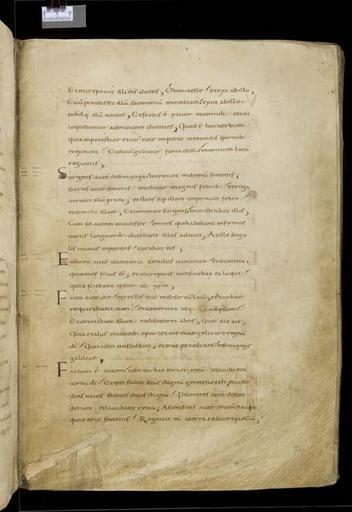 | Keywords: MCC-61050 Evangeliarium (Lebuïnuscodex) (156).jpg Artwork nl Anonymous Noordoost-Frankrijk Anonymous Rijnland Anonymous Maasland nl De kern van de boekband van de Lebuïnuscodex wordt gevormd door twee eikenhouten platten De rug en het achterplat zijn overtrokken met zeemleer Het voorplat is rijkelijk versierd met verguld zilversmeedwerk reliëfs van walrustand en verscheidene stenen De compositie van de bekleding van het voorplat wordt bepaald door een verguld zilveren filigraankruis Aan de uiteinden van de kruisarmen bevinden zich vierpassen met overhoeks vierkant eveneens met filigraan gedecoreerd Hiervan zijn er slechts twee bewaard gebleven en wel die aan de verticale kruisarmen Zij bevatten tevens nog de oorspronkelijke versiering bestaande uit een filigraanmedaillon met een pseudo-camee van respectievelijk een mannen- en een vrouwenhoofd in profiel Het snijpunt van het kruis wordt ingenomen door een ver vooruitstekend Bacchuskopje in chalcedoon te herkennen aan de kleine druiventrosjes in zijn haartooi Het kopje is gevat in een filigraanmedaillon welke op zijn beurt weer is geplaatst op een vierpas van filigraanwerk Op elk van de kruisarmen bevindt zich een ovale steen 'en cabochon' op een medaillon met filigraan Het filigraanwerk van kruis en sierstukken is in de vorm van visblazen In de ruimten tussen de kruisarmen zijn rechthoekige reliëfs van walrustand aangebracht met de vier evangelisten en hun symbool De reliëfs hebben de volgende afmetingen H 10 0 x B 5 5 cm Van links boven naar rechts onder betreft het Mattheus met de engel Johannes met de adelaar Marcus met de gevleugelde leeuw en Lucas met de gevleugelde os De figuren zijn paarsgewijs als elkaars spiegelbeeld ten opzichte van de middenas geplaatst Mattheus en Johannes zitten vrijwel geheel frontaal terwijl Marcus en Lucas meer in profiel zijn afgebeeld Qua opbouw verschillen de vier reliëfs nauwelijks van elkaar Binnen een rand van vierlobbige blaadjes verheffen zich twee zuilen met een basis een kapiteel en een dekplaat Hierop rust een rondboog geflankeerd door twee torens en afgedekt met een fronton dat boven Mattheus en Johannes boogvormig en boven Marcus en Lucas driehoekig is Onder deze overhuiving zitten de evangelisten gekleed in een lang gewaad en mantel met gekruiste benen aan een lessenaar hun blote voeten rustend op een bankje Allen zijn baardeloos en voorzien van een nimbus Voorts houden ze een pen in hun rechterhand terwijl hun linker op een boek ligt of gebarend is opgeheven Boven elk van de evangelisten verschijnt in de opening van het fronton zijn symbool met een spreukband Dit rijkelijk gedecoreerde middenveld wordt omlijst door sierbanden van verguld koper De opbouw van de sierlijsten is steeds dezelfde een opstaande smalle band die op regelmatige afstanden is voorzien van holten met aan weerszijden een brede strook voorzien van een gestanst motief Aan de lange zijden van de boekband bestaat het motief uit palmetten aan de korte zijden uit rozetten Van deze laatstgenoemde stroken ontbreekt steeds de buitenste rand Bij alle stroken met palmettenmotief wijzen de palmetten naar links met uitzondering van de buitenste strook rechtsboven die het motief in tegengestelde richting toont Verguld zilveren rozetten op de hoeken van het voorplat omgeven door een smalle rand van filigraanwerk met cirkelmotief en bekroond met een 'en cabochon' gezette steen completeren het geheel Van de rozet links onder ontbreekt de steen en is slechts de buitenste rand over Aan de voorzijde van de boekband bevinden zich nog de rudimenten van twee sluitingen between u'825' u'1000' u'1150' u'850' u'1199' u'1199' nl perkament eikenhout zilver goud koper walrustand chalcedoon glas leer Size 35 5 26 0 cm nl Hoogte 35 5cm Breedte 26 0cm Diepte 13 5cm Institution Museum Catharijneconvent object history exhibition history credit line nl Foto Museum Catharijneconvent Utrecht foto HetFotoAtelier Peter Rothengatter accession number Object number 61050 Inventory number ABM h1 place of creation https //www catharijneconvent nl/adlib/61050/ View this work on the website of Museum Catharijneconvent Museum Catharijneconvent Cc-zero <gallery> File MCC-61050_Evangeliarium_Lebuïnuscodex_ 11 jpg File MCC-61050_Evangeliarium_Lebuïnuscodex_ 172 jpg File MCC-61050_Evangeliarium_Lebuïnuscodex_ 212 jpg File MCC-61050_Evangeliarium_Lebuïnuscodex_ 61 jpg File MCC-61050_Evangeliarium_Lebuïnuscodex_ 12 jpg File MCC-61050_Evangeliarium_Lebuïnuscodex_ 213 jpg File MCC-61050_Evangeliarium_Lebuïnuscodex_ 56 jpg File MCC-61050_Evangeliarium_Lebuïnuscodex_ 232 jpg File MCC-61050_Evangeliarium_Lebuïnuscodex_ 93 jpg File MCC-61050_Evangeliarium_Lebuïnuscodex_ 99 jpg File MCC-61050_Evangeliarium_Lebuïnuscodex_ 184 jpg File MCC-61050_Evangeliarium_Lebuïnuscodex_ 64 jpg File MCC-61050_Evangeliarium_Lebuïnuscodex_ 299 jpg File MCC-61050_Evangeliarium_Lebuïnuscodex_ 86 jpg File MCC-61050_Evangeliarium_Lebuïnuscodex_ 260 jpg File MCC-61050_Evangeliarium_Lebuïnuscodex_ 159 jpg File MCC-61050_Evangeliarium_Lebuïnuscodex_ 247 jpg File MCC-61050_Evangeliarium_Lebuïnuscodex_ 180 jpg File MCC-61050_Evangeliarium_Lebuïnuscodex_ 121 jpg File MCC-61050_Evangeliarium_Lebuïnuscodex_ 315 jpg File MCC-61050_Evangeliarium_Lebuïnuscodex_ 284 jpg File MCC-61050_Evangeliarium_Lebuïnuscodex_ 33 jpg File MCC-61050_Evangeliarium_Lebuïnuscodex_ 44 jpg File MCC-61050_Evangeliarium_Lebuïnuscodex_ 258 jpg File MCC-61050_Evangeliarium_Lebuïnuscodex_ 237 jpg File MCC-61050_Evangeliarium_Lebuïnuscodex_ 20 jpg File MCC-61050_Evangeliarium_Lebuïnuscodex_ 220 jpg File MCC-61050_Evangeliarium_Lebuïnuscodex_ 279 jpg File MCC-61050_Evangeliarium_Lebuïnuscodex_ 183 jpg File MCC-61050_Evangeliarium_Lebuïnuscodex_ 60 jpg File MCC-61050_Evangeliarium_Lebuïnuscodex_ 166 jpg File MCC-61050_Evangeliarium_Lebuïnuscodex_ 97 jpg File MCC-61050_Evangeliarium_Lebuïnuscodex_ 71 jpg File MCC-61050_Evangeliarium_Lebuïnuscodex_ 132 jpg File MCC-61050_Evangeliarium_Lebuïn