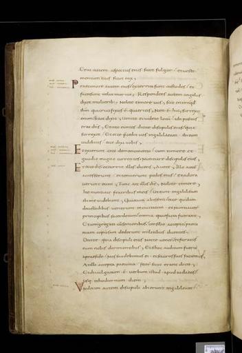 | Keywords: MCC-61050 Evangeliarium (Lebuïnuscodex) (87).jpg Artwork nl Anonymous Noordoost-Frankrijk Anonymous Rijnland Anonymous Maasland nl De kern van de boekband van de Lebuïnuscodex wordt gevormd door twee eikenhouten platten De rug en het achterplat zijn overtrokken met zeemleer Het voorplat is rijkelijk versierd met verguld zilversmeedwerk reliëfs van walrustand en verscheidene stenen De compositie van de bekleding van het voorplat wordt bepaald door een verguld zilveren filigraankruis Aan de uiteinden van de kruisarmen bevinden zich vierpassen met overhoeks vierkant eveneens met filigraan gedecoreerd Hiervan zijn er slechts twee bewaard gebleven en wel die aan de verticale kruisarmen Zij bevatten tevens nog de oorspronkelijke versiering bestaande uit een filigraanmedaillon met een pseudo-camee van respectievelijk een mannen- en een vrouwenhoofd in profiel Het snijpunt van het kruis wordt ingenomen door een ver vooruitstekend Bacchuskopje in chalcedoon te herkennen aan de kleine druiventrosjes in zijn haartooi Het kopje is gevat in een filigraanmedaillon welke op zijn beurt weer is geplaatst op een vierpas van filigraanwerk Op elk van de kruisarmen bevindt zich een ovale steen 'en cabochon' op een medaillon met filigraan Het filigraanwerk van kruis en sierstukken is in de vorm van visblazen In de ruimten tussen de kruisarmen zijn rechthoekige reliëfs van walrustand aangebracht met de vier evangelisten en hun symbool De reliëfs hebben de volgende afmetingen H 10 0 x B 5 5 cm Van links boven naar rechts onder betreft het Mattheus met de engel Johannes met de adelaar Marcus met de gevleugelde leeuw en Lucas met de gevleugelde os De figuren zijn paarsgewijs als elkaars spiegelbeeld ten opzichte van de middenas geplaatst Mattheus en Johannes zitten vrijwel geheel frontaal terwijl Marcus en Lucas meer in profiel zijn afgebeeld Qua opbouw verschillen de vier reliëfs nauwelijks van elkaar Binnen een rand van vierlobbige blaadjes verheffen zich twee zuilen met een basis een kapiteel en een dekplaat Hierop rust een rondboog geflankeerd door twee torens en afgedekt met een fronton dat boven Mattheus en Johannes boogvormig en boven Marcus en Lucas driehoekig is Onder deze overhuiving zitten de evangelisten gekleed in een lang gewaad en mantel met gekruiste benen aan een lessenaar hun blote voeten rustend op een bankje Allen zijn baardeloos en voorzien van een nimbus Voorts houden ze een pen in hun rechterhand terwijl hun linker op een boek ligt of gebarend is opgeheven Boven elk van de evangelisten verschijnt in de opening van het fronton zijn symbool met een spreukband Dit rijkelijk gedecoreerde middenveld wordt omlijst door sierbanden van verguld koper De opbouw van de sierlijsten is steeds dezelfde een opstaande smalle band die op regelmatige afstanden is voorzien van holten met aan weerszijden een brede strook voorzien van een gestanst motief Aan de lange zijden van de boekband bestaat het motief uit palmetten aan de korte zijden uit rozetten Van deze laatstgenoemde stroken ontbreekt steeds de buitenste rand Bij alle stroken met palmettenmotief wijzen de palmetten naar links met uitzondering van de buitenste strook rechtsboven die het motief in tegengestelde richting toont Verguld zilveren rozetten op de hoeken van het voorplat omgeven door een smalle rand van filigraanwerk met cirkelmotief en bekroond met een 'en cabochon' gezette steen completeren het geheel Van de rozet links onder ontbreekt de steen en is slechts de buitenste rand over Aan de voorzijde van de boekband bevinden zich nog de rudimenten van twee sluitingen between u'825' u'1000' u'1150' u'850' u'1199' u'1199' nl perkament eikenhout zilver goud koper walrustand chalcedoon glas leer Size 35 5 26 0 cm nl Hoogte 35 5cm Breedte 26 0cm Diepte 13 5cm Institution Museum Catharijneconvent object history exhibition history credit line nl Foto Museum Catharijneconvent Utrecht foto HetFotoAtelier Peter Rothengatter accession number Object number 61050 Inventory number ABM h1 place of creation https //www catharijneconvent nl/adlib/61050/ View this work on the website of Museum Catharijneconvent Museum Catharijneconvent Cc-zero <gallery> File MCC-61050_Evangeliarium_Lebuïnuscodex_ 11 jpg File MCC-61050_Evangeliarium_Lebuïnuscodex_ 172 jpg File MCC-61050_Evangeliarium_Lebuïnuscodex_ 212 jpg File MCC-61050_Evangeliarium_Lebuïnuscodex_ 61 jpg File MCC-61050_Evangeliarium_Lebuïnuscodex_ 12 jpg File MCC-61050_Evangeliarium_Lebuïnuscodex_ 213 jpg File MCC-61050_Evangeliarium_Lebuïnuscodex_ 56 jpg File MCC-61050_Evangeliarium_Lebuïnuscodex_ 232 jpg File MCC-61050_Evangeliarium_Lebuïnuscodex_ 93 jpg File MCC-61050_Evangeliarium_Lebuïnuscodex_ 99 jpg File MCC-61050_Evangeliarium_Lebuïnuscodex_ 184 jpg File MCC-61050_Evangeliarium_Lebuïnuscodex_ 64 jpg File MCC-61050_Evangeliarium_Lebuïnuscodex_ 299 jpg File MCC-61050_Evangeliarium_Lebuïnuscodex_ 86 jpg File MCC-61050_Evangeliarium_Lebuïnuscodex_ 260 jpg File MCC-61050_Evangeliarium_Lebuïnuscodex_ 159 jpg File MCC-61050_Evangeliarium_Lebuïnuscodex_ 247 jpg File MCC-61050_Evangeliarium_Lebuïnuscodex_ 180 jpg File MCC-61050_Evangeliarium_Lebuïnuscodex_ 121 jpg File MCC-61050_Evangeliarium_Lebuïnuscodex_ 315 jpg File MCC-61050_Evangeliarium_Lebuïnuscodex_ 284 jpg File MCC-61050_Evangeliarium_Lebuïnuscodex_ 33 jpg File MCC-61050_Evangeliarium_Lebuïnuscodex_ 44 jpg File MCC-61050_Evangeliarium_Lebuïnuscodex_ 258 jpg File MCC-61050_Evangeliarium_Lebuïnuscodex_ 237 jpg File MCC-61050_Evangeliarium_Lebuïnuscodex_ 20 jpg File MCC-61050_Evangeliarium_Lebuïnuscodex_ 220 jpg File MCC-61050_Evangeliarium_Lebuïnuscodex_ 279 jpg File MCC-61050_Evangeliarium_Lebuïnuscodex_ 183 jpg File MCC-61050_Evangeliarium_Lebuïnuscodex_ 60 jpg File MCC-61050_Evangeliarium_Lebuïnuscodex_ 166 jpg File MCC-61050_Evangeliarium_Lebuïnuscodex_ 97 jpg File MCC-61050_Evangeliarium_Lebuïnuscodex_ 71 jpg File MCC-61050_Evangeliarium_Lebuïnuscodex_ 132 jpg File MCC-61050_Evangeliarium_Lebuïnu