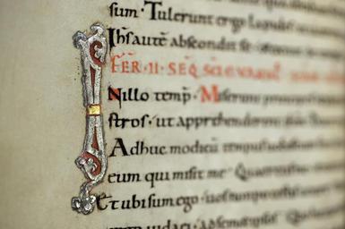 | Keywords: MCC-61090 Evangelistarium (Ansfriduscodex) (322).tif Artwork nl Anonymous Neder-Rijn Anonymous St Gallen OSB nl De kern van de boekband van de Ansfriduscodex wordt gevormd door twee eikenhouten platten Het voorplat bestaat uit een verdiept middenveld omgeven door een brede rand Het is beslagen met dunne verguld zilveren platen In het middenveld bevindt zich een verguld zilveren kruis met een verhoogd ingezwenkt achtkantig middenstuk en breed uitlopende armen Het kruis is versierd met filigraan en vijf halfedelstenen te weten een ronde steen van amethist en kornalijn op het snijpunt van de beide kruisarmen een lichtblauwe kwarts respectievelijk een agaat op de brede uiteinden van de verticale kruisarmen en twee nog niet nader bestemde stenen op de horizontale kruisarmen Het filigraanwerk bestaat uit cirkelvormige uitwaaierende ranken met bolletjes aan de uiteinden en in het midden hier en daar kleine rozetjes In de vier velden tussen de kruisarmen zijn steeds twee stenen in een diagonale lijn geplaatst Van boven naar beneden en van links naar rechts betreft het bergkristal en amethist amethist en kwarts kwarts de andere steen is verloren gegaan kwarts en amethist De brede rand rond het verdiepte middenveld is eveneens rijkelijk versierd Op de hoeken zijn geƫmailleerde medaillons met de evangelistensymbolen aangebracht De banderol die de figuren dragen vermeldt de naam van de evangelist Van links boven naar rechts onder betreft het de adelaar van Johannes de gevleugelde mens van Mattheus de gevleugelde leeuw van Marcus en de gevleugelde stier van Lucas Tussen de grote medaillons verdeeld over de lange en korte zijden van de rand bevinden zich zes kleinere geƫmailleerde medaillons Hiervan vormen de bovenste twee op de lange zijden tezamen de kroning van Maria links de gekroonde Moeder Gods en rechts de zegenende Christus Eronder bevinden zich twee medaillons waarop met wierookvaten zwaaiende engelen Op de korte zijden tonen de twee medaillons een afbeelding van een opspringend hert Op de rand bevinden zich verder nog vier alsengemmen met gegraveerde primitieve figuurtjes en zestien halfedelstenen waaronder kwarts amethist bergkristal jaspis en een lagensteen niccolo genaamd Zeven van deze stenen zijn voorzien van een gegraveerde mythologische voorstelling Zie Snijder 1932 voor een gedetailleerde beschrijving van de stenen en voorstellingen De rode rechthoekige jaspis in de onderrand bevat een koefische inscriptie die betekent 'Stel uw vertrouwen in Allah en zoek contact met den heer der getrouwen' Alle sierstukken alsmede de armen en de acht segmenten van het middenstuk van het kruis zijn omlijst met gedraaid gouddraad De rug en het achterplat zijn overtrokken met van oorsprong rood fluweel met rozenmotief Op het achterplat zijn vijf gegraveerde zilveren stukken aangebracht te weten vier ronde medaillons op de hoeken en in het midden een amandelvormige plaquette met een afbeelding van een bisschop omgeven door een rand met palmettenmotief In de buitenste rand staat de volgende Latijnse tekst gegraveerd ORNATU LAPIDUM RUTILANS AUROQUE POLITUM / PRAESULIS ANSFRIDI MARTINO MUNUS OBIVI vert 'versierd met flonkerende edelstenen en schitterend goud ben ik het boek een geschenk van bisschop Ansfridus aan Martinus de Utrechtse Martinuskerk' between u'950' u'1000' u'1000' u'1499' nl perkament eikenhout zilver goud kwarts amethist glas kornalijn bergkristal niccolo jaspis agaat fluweel Size 34 0 26 5 cm nl Hoogte 34 0cm Breedte 26 5cm Diepte 10 0cm Institution Museum Catharijneconvent object history exhibition history credit line nl Foto Museum Catharijneconvent Utrecht foto HetFotoAtelier Peter Rothengatter accession number Object number 61090 Inventory number ABM h2 place of creation https //www catharijneconvent nl/adlib/61090/ View this work on the website of Museum Catharijneconvent Museum Catharijneconvent Cc-zero <gallery> File MCC-61090_Evangelistarium_Ansfriduscodex_ 319 tif File MCC-61090_Evangelistarium_Ansfriduscodex_ 157 tif File MCC-61090_Evangelistarium_Ansfriduscodex_ 103 tif File MCC-61090_Evangelistarium_Ansfriduscodex_ 279 tif File MCC-61090_Evangelistarium_Ansfriduscodex_ 250 tif File MCC-61090_Evangelistarium_Ansfriduscodex_ 104 tif File MCC-61090_Evangelistarium_Ansfriduscodex_ 96 tif File MCC-61090_Evangelistarium_Ansfriduscodex_ 276 tif File MCC-61090_Evangelistarium_Ansfriduscodex_ 114 tif File MCC-61090_Evangelistarium_Ansfriduscodex_ 233 tif File MCC-61090_Evangelistarium_Ansfriduscodex_ 195 tif File MCC-61090_Evangelistarium_Ansfriduscodex_ 261 tif File MCC-61090_Evangelistarium_Ansfriduscodex_ 73 tif File MCC-61090_Evangelistarium_Ansfriduscodex_ 105 tif File MCC-61090_Evangelistarium_Ansfriduscodex_ 40 tif File MCC-61090_Evangelistarium_Ansfriduscodex_ 231 tif File MCC-61090_Evangelistarium_Ansfriduscodex_ 48 tif File MCC-61090_Evangelistarium_Ansfriduscodex_ 43 tif File MCC-61090_Evangelistarium_Ansfriduscodex_ 50 tif File MCC-61090_Evangelistarium_Ansfriduscodex_ 1 tif File MCC-61090_Evangelistarium_Ansfriduscodex_ 198 tif File MCC-61090_Evangelistarium_Ansfriduscodex_ 144 tif File MCC-61090_Evangelistarium_Ansfriduscodex_ 293 tif File MCC-61090_Evangelistarium_Ansfriduscodex_ 109 tif File MCC-61090_Evangelistarium_Ansfriduscodex_ 318 tif File MCC-61090_Evangelistarium_Ansfriduscodex_ 254 tif File MCC-61090_Evangelistarium_Ansfriduscodex_ 301 tif File MCC-61090_Evangelistarium_Ansfriduscodex_ 107 tif File MCC-61090_Evangelistarium_Ansfriduscodex_ 284 tif File MCC-61090_Evangelistarium_Ansfriduscodex_ 251 tif File MCC-61090_Evangelistarium_Ansfriduscodex_ 121 tif File MCC-61090_Evangelistarium_Ansfriduscodex_ 172 tif File MCC-61090_Evangelistarium_Ansfriduscodex_ 213 tif File MCC-61090_Evangelistarium_Ansfriduscodex_ 264 tif File MCC-61090_Evangelistarium_Ansfriduscodex_ 118 tif File MCC-61090_Evangelistarium_Ansfriduscodex_ 90 tif File MCC-61090_Evangelistarium_Ansfriduscodex_ 287 tif File MCC-61090_Evangelistarium_Ansfriduscodex_ 260 tif File MCC-61090_E