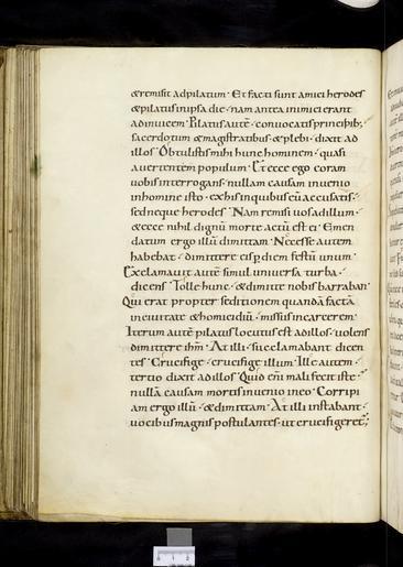 | Keywords: MCC-61090 Evangelistarium (Ansfriduscodex) (128).tif Artwork nl Anonymous Neder-Rijn Anonymous St Gallen OSB nl De kern van de boekband van de Ansfriduscodex wordt gevormd door twee eikenhouten platten Het voorplat bestaat uit een verdiept middenveld omgeven door een brede rand Het is beslagen met dunne verguld zilveren platen In het middenveld bevindt zich een verguld zilveren kruis met een verhoogd ingezwenkt achtkantig middenstuk en breed uitlopende armen Het kruis is versierd met filigraan en vijf halfedelstenen te weten een ronde steen van amethist en kornalijn op het snijpunt van de beide kruisarmen een lichtblauwe kwarts respectievelijk een agaat op de brede uiteinden van de verticale kruisarmen en twee nog niet nader bestemde stenen op de horizontale kruisarmen Het filigraanwerk bestaat uit cirkelvormige uitwaaierende ranken met bolletjes aan de uiteinden en in het midden hier en daar kleine rozetjes In de vier velden tussen de kruisarmen zijn steeds twee stenen in een diagonale lijn geplaatst Van boven naar beneden en van links naar rechts betreft het bergkristal en amethist amethist en kwarts kwarts de andere steen is verloren gegaan kwarts en amethist De brede rand rond het verdiepte middenveld is eveneens rijkelijk versierd Op de hoeken zijn geƫmailleerde medaillons met de evangelistensymbolen aangebracht De banderol die de figuren dragen vermeldt de naam van de evangelist Van links boven naar rechts onder betreft het de adelaar van Johannes de gevleugelde mens van Mattheus de gevleugelde leeuw van Marcus en de gevleugelde stier van Lucas Tussen de grote medaillons verdeeld over de lange en korte zijden van de rand bevinden zich zes kleinere geƫmailleerde medaillons Hiervan vormen de bovenste twee op de lange zijden tezamen de kroning van Maria links de gekroonde Moeder Gods en rechts de zegenende Christus Eronder bevinden zich twee medaillons waarop met wierookvaten zwaaiende engelen Op de korte zijden tonen de twee medaillons een afbeelding van een opspringend hert Op de rand bevinden zich verder nog vier alsengemmen met gegraveerde primitieve figuurtjes en zestien halfedelstenen waaronder kwarts amethist bergkristal jaspis en een lagensteen niccolo genaamd Zeven van deze stenen zijn voorzien van een gegraveerde mythologische voorstelling Zie Snijder 1932 voor een gedetailleerde beschrijving van de stenen en voorstellingen De rode rechthoekige jaspis in de onderrand bevat een koefische inscriptie die betekent 'Stel uw vertrouwen in Allah en zoek contact met den heer der getrouwen' Alle sierstukken alsmede de armen en de acht segmenten van het middenstuk van het kruis zijn omlijst met gedraaid gouddraad De rug en het achterplat zijn overtrokken met van oorsprong rood fluweel met rozenmotief Op het achterplat zijn vijf gegraveerde zilveren stukken aangebracht te weten vier ronde medaillons op de hoeken en in het midden een amandelvormige plaquette met een afbeelding van een bisschop omgeven door een rand met palmettenmotief In de buitenste rand staat de volgende Latijnse tekst gegraveerd ORNATU LAPIDUM RUTILANS AUROQUE POLITUM / PRAESULIS ANSFRIDI MARTINO MUNUS OBIVI vert 'versierd met flonkerende edelstenen en schitterend goud ben ik het boek een geschenk van bisschop Ansfridus aan Martinus de Utrechtse Martinuskerk' between u'950' u'1000' u'1000' u'1499' nl perkament eikenhout zilver goud kwarts amethist glas kornalijn bergkristal niccolo jaspis agaat fluweel Size 34 0 26 5 cm nl Hoogte 34 0cm Breedte 26 5cm Diepte 10 0cm Institution Museum Catharijneconvent object history exhibition history credit line nl Foto Museum Catharijneconvent Utrecht foto HetFotoAtelier Peter Rothengatter accession number Object number 61090 Inventory number ABM h2 place of creation https //www catharijneconvent nl/adlib/61090/ View this work on the website of Museum Catharijneconvent Museum Catharijneconvent Cc-zero <gallery> File MCC-61090_Evangelistarium_Ansfriduscodex_ 319 tif File MCC-61090_Evangelistarium_Ansfriduscodex_ 157 tif File MCC-61090_Evangelistarium_Ansfriduscodex_ 103 tif File MCC-61090_Evangelistarium_Ansfriduscodex_ 279 tif File MCC-61090_Evangelistarium_Ansfriduscodex_ 250 tif File MCC-61090_Evangelistarium_Ansfriduscodex_ 104 tif File MCC-61090_Evangelistarium_Ansfriduscodex_ 96 tif File MCC-61090_Evangelistarium_Ansfriduscodex_ 276 tif File MCC-61090_Evangelistarium_Ansfriduscodex_ 114 tif File MCC-61090_Evangelistarium_Ansfriduscodex_ 233 tif File MCC-61090_Evangelistarium_Ansfriduscodex_ 195 tif File MCC-61090_Evangelistarium_Ansfriduscodex_ 261 tif File MCC-61090_Evangelistarium_Ansfriduscodex_ 73 tif File MCC-61090_Evangelistarium_Ansfriduscodex_ 105 tif File MCC-61090_Evangelistarium_Ansfriduscodex_ 40 tif File MCC-61090_Evangelistarium_Ansfriduscodex_ 231 tif File MCC-61090_Evangelistarium_Ansfriduscodex_ 48 tif File MCC-61090_Evangelistarium_Ansfriduscodex_ 43 tif File MCC-61090_Evangelistarium_Ansfriduscodex_ 50 tif File MCC-61090_Evangelistarium_Ansfriduscodex_ 1 tif File MCC-61090_Evangelistarium_Ansfriduscodex_ 198 tif File MCC-61090_Evangelistarium_Ansfriduscodex_ 144 tif File MCC-61090_Evangelistarium_Ansfriduscodex_ 293 tif File MCC-61090_Evangelistarium_Ansfriduscodex_ 109 tif File MCC-61090_Evangelistarium_Ansfriduscodex_ 318 tif File MCC-61090_Evangelistarium_Ansfriduscodex_ 254 tif File MCC-61090_Evangelistarium_Ansfriduscodex_ 301 tif File MCC-61090_Evangelistarium_Ansfriduscodex_ 107 tif File MCC-61090_Evangelistarium_Ansfriduscodex_ 284 tif File MCC-61090_Evangelistarium_Ansfriduscodex_ 251 tif File MCC-61090_Evangelistarium_Ansfriduscodex_ 121 tif File MCC-61090_Evangelistarium_Ansfriduscodex_ 172 tif File MCC-61090_Evangelistarium_Ansfriduscodex_ 213 tif File MCC-61090_Evangelistarium_Ansfriduscodex_ 264 tif File MCC-61090_Evangelistarium_Ansfriduscodex_ 118 tif File MCC-61090_Evangelistarium_Ansfriduscodex_ 90 tif File MCC-61090_Evangelistarium_Ansfriduscodex_ 287 tif File MCC-61090_Evangelistarium_Ansfriduscodex_ 260 tif File MCC-61090_E