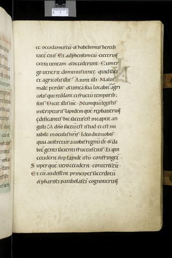 | Keywords: MCC-68515 Evangelistarium (Bernulphuscodex) (127).jpg Artwork nl Anonymous Zuid-Duitsland Reichenau OSB nl De kern van de boekband van de Bernulphuscodex wordt gevormd door twee eikenhouten platten De rug en het achterplat zijn overtrokken met zeemleer Het voorplat bestaat uit een enigszins verdiept rechthoekig middenveld omgeven door een brede rand In het middenveld bevindt zich een verguld zilveren filigraankruis met een verhoogd ingezwenkt achtkantig middenstuk en breed uitlopende armen Het filigraanwerk bestaat uit cirkelvormige uitwaaierende ranken met bolletjes aan de uiteinden en in het midden hier en daar kleine rozetjes Op het snijpunt van beide kruisarmen bevindt zich een ovale zwartblauw en grijs gekleurde onyx in de bovenarm een klassiek gesneden vrouwenkop van chalcedoon op de rechterarm een stuk donkerrood glas en beneden een bruin gestreepte agaat De bekleding van de linker kruisarm ontbreekt De lager gelegen velden tussen de kruisarmen zijn bekleed met dunne gouden platen Langs de randen hiervan is een parelrandje gestanst In het midden van de velden bevindt zich een medaillon met email-cloisonné De bovenste twee zijn voorzien van een diagonaal patroon met witte getrapte vierkantjes met rode stip tegen een donkerblauwe achtergrond Op de onderste twee is een stervormig respectievelijk concentrisch patroon aangebracht De aldaar toegepaste kleuren zijn translucide groen opaak wit geel en bruinpaars In de buitenste hoeken van de lager gelegen velden zijn ronde stenen in een vierkante zetting aangebracht Hiervan is slechts de opaal in de rechter bovenhoek bewaard gebleven In de overige hoeken is alleen nog de vierkante uitsparing te zien De brede rand is overtrokken met verguld zilveren stroken met grote rozetten die van elkaar gescheiden zijn door vier kleine stippelroosjes tussen twee evenwijdig lopende parelrandjes Aan de korte zijden van het voorplat ontbreekt de rozettenrand; slechts de spijkers waarmee ze waren vastgemaakt zijn nog te zien Aan de lange zijde ontbreekt een stuk uit de rand en wel links onder het midden Verdeeld over de nog aanwezige rozetten zijn vier alsengemmen en twee zilveren medaillons aangebracht Laatstgenoemde zijn versierd met een gezicht en bladwerk Vier medaillons met de evangelistensymbolen zijn op de hoeken van de brede rand aangebracht van links boven naar rechts onder betreft het de adelaar van Johannes de engel van Mattheus de gevleugelde os van Lucas en de gevleugelde leeuw van Marcus De banderol die de figuren dragen vermeldt de naam van de betreffende evangelist De naam van Marcus staat in spiegelbeeld Het woord Lucas is over andere letters gekrast De armen van het kruis de acht segmenten van het middenstuk alsmede de sierstukken zijn omlijst met een fijn geparelde gouden filigraandraad Techniek nog in te vullen volgens Korteweg zijn de medaillons met symbolen van Marcus en Lucas uit een graveerplaat gezaagd; rozetten in rand gestanst De sierlijst met rozetten is met behulp van kleine spijkertjes op de houten rand bevestigd Staat nog in te vullen Volgens Korteweg 1979 waren de medaillons met de symbolen van Johannes en Mattheus oorspronkelijk geëmailleerd De velden vertonen nog sporen van gekleurd email Volgens Steenbock 1965 waren het juist de medaillons met Lucas en Marcus Volgens Korteweg 1979 is het verguldsel van de stroken met rozetten enigszins afgesleten Onder de linkerzijde van het metaalwerk van het voorplat bevindt zich rode zijde; aan de smalle zijden van het voorplat ontbreken de rozettenranden slechts de spijkers waarmee ze waren vastgemaakt zijn nog te zien Aan de lange zijde links onder het midden ontbreekt een stuk uit de rand Van het chalcedonen vrouwenkopje ontbreekt de neus en is de kin beschadigd between u'1040' u'1200' u'1050' u'1499' nl perkament eikenhout zilver goud chalcedoon onyx glas agaat opaal Size 31 5 24 0 cm nl Hoogte 31 5cm Breedte 24 0cm Diepte 9 8cm Institution Museum Catharijneconvent object history exhibition history credit line nl Foto Museum Catharijneconvent Utrecht foto HetFotoAtelier Peter Rothengatter accession number Object number 68515 Inventory number ABM h3 place of creation https //www catharijneconvent nl/adlib/68515/ View this work on the website of Museum Catharijneconvent Museum Catharijneconvent Cc-zero <gallery> File MCC-68515_Evangelistarium_Bernulphuscodex_ 353 jpg File MCC-68515_Evangelistarium_Bernulphuscodex_ 412 jpg File MCC-68515_Evangelistarium_Bernulphuscodex_ 160 jpg File MCC-68515_Evangelistarium_Bernulphuscodex_ 6 jpg File MCC-68515_Evangelistarium_Bernulphuscodex_ 393 jpg File MCC-68515_Evangelistarium_Bernulphuscodex_ 89 jpg File MCC-68515_Evangelistarium_Bernulphuscodex_ 270 jpg File MCC-68515_Evangelistarium_Bernulphuscodex_ 425 jpg File MCC-68515_Evangelistarium_Bernulphuscodex_ 104 jpg File MCC-68515_Evangelistarium_Bernulphuscodex_ 291 jpg File MCC-68515_Evangelistarium_Bernulphuscodex_ 398 jpg File MCC-68515_Evangelistarium_Bernulphuscodex_ 339 jpg File MCC-68515_Evangelistarium_Bernulphuscodex_ 65 jpg File MCC-68515_Evangelistarium_Bernulphuscodex_ 403 jpg File MCC-68515_Evangelistarium_Bernulphuscodex_ 311 jpg File MCC-68515_Evangelistarium_Bernulphuscodex_ 159 jpg File MCC-68515_Evangelistarium_Bernulphuscodex_ 347 jpg File MCC-68515_Evangelistarium_Bernulphuscodex_ 453 jpg File MCC-68515_Evangelistarium_Bernulphuscodex_ 289 jpg File MCC-68515_Evangelistarium_Bernulphuscodex_ 273 jpg File MCC-68515_Evangelistarium_Bernulphuscodex_ 286 jpg File MCC-68515_Evangelistarium_Bernulphuscodex_ 236 jpg File MCC-68515_Evangelistarium_Bernulphuscodex_ 447 jpg File MCC-68515_Evangelistarium_Bernulphuscodex_ 227 jpg File MCC-68515_Evangelistarium_Bernulphuscodex_ 110 jpg File MCC-68515_Evangelistarium_Bernulphuscodex_ 139 jpg File MCC-68515_Evangelistarium_Bernulphuscodex_ 276 jpg File MCC-68515_Evangelistarium_Bernulphuscodex_ 10 jpg File MCC-68515_Evangelistarium_Bernulphuscodex_ 325 jpg File MCC-68515_Evangelistarium_Bernulphuscodex_ 154 jpg File MCC-68515_
