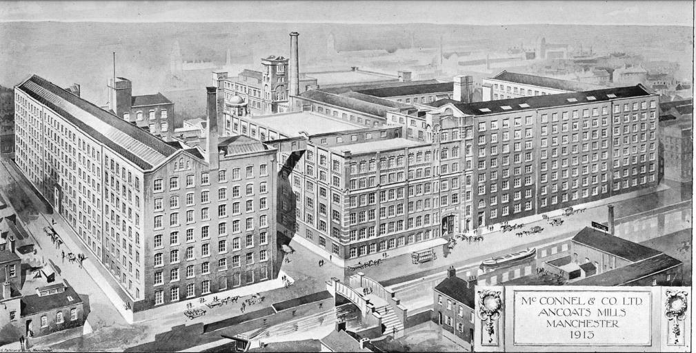 | Keywords: McConnel & Company mills about 1913.jpg Ancoats Manchester McConnel Company's mills about 1913 Scanned from A Century of fine Cotton Spinning 1790-1913 McConnel Co Ltd Facing p 24 1913 Scanned by Mr Stephen copyright expired PD-old McConnel Co Mills |