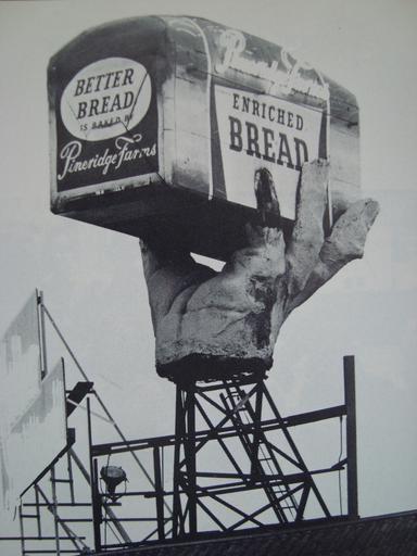 Keywords: Landmark, rooftop signage on the McGavin Bakery building on the SW corner of West Broadway and Arbutus Street in Vancouver, BC. The stand-out display was installed in 1947 and eventually deteriorated to the point of removal circa-1973. The hand had a shirt cuff but lost it to a wind storm. [Photo by Henri Robideau] Landmark, rooftop signage on the McGavin Bakery building on the SW corner of West Broadway and Arbutus Street in Vancouver, BC. The stand-out display was installed in 1947 and eventually deteriorated to the point of removal circa-1973. The hand had a shirt cuff but lost it to a wind storm. [Photo by Henri Robideau] |