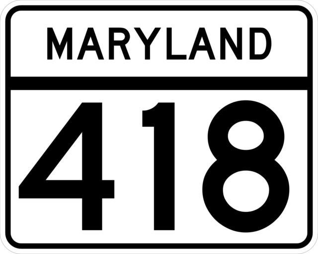 Keywords: MD Route 418.svg A Maryland Route 418 route marker Made according to http //www marylandroads com/businesswithsha/bizstdsspecs/desmanualstdpub/publicationsonline/oots/pdf/M1-5 pdf using Inkscape Jeff02 Maryland State Highway shields 418