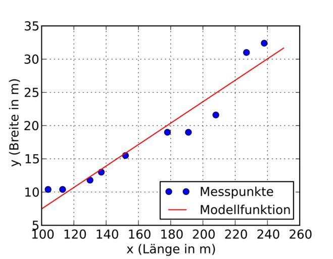 | Keywords: MDKQ2.svg  de Fit einer linearen Funktion own Neufassung von File Streudiagramm_Kriegsschiffe png vom Benutzer Philipendula <br /> Created with Matplotlib Chrischi 2011-02-01 Cc-zero Quellen Skript zur Bildgenerierung Erzeugungsskript um die Grafik zu erstellen Anleitung Benötigte Open-Source-Software http //www python org/download Python Python-Paket http //sourceforge net/projects/numpy numpy Python-Paket http //matplotlib sourceforge net matplotlib Nach der Installation von Python den Quelltext in eine Datei mdkq py kopieren und starten durch Doppelklicken oder in der Konsole durch Eingabe von python mdkq py Python-Skript <source lang python > This source code is public domain Author Christian Schirm import numpy pylab from matplotlib font_manager import FontProperties import matplotlib pyplot as plt x 208 152 113 227 137 238 178 104 191 130 y 21 6 15 5 10 4 31 0 13 0 32 4 19 0 10 4 19 0 11 8 N 2 A numpy zeros N N for i in range N for j in range N Ai j sum xi i+j for xi in x b numpy zeros N for i in range N bi sum xi i yi for xi yi in zip x y c numpy linalg solve A b print numpy std numpy asarray y -numpy sum ci numpy asarray x i for i in range len c axis 0 xneu numpy linspace 100 250 num 2 yneu numpy sum ci xneu i for i in range len c axis 0 plt clf fig plt figure figsize 4 5 3 5 fig subplotpars bottom 0 13 y1 plt plot x y 'o' y2 plt plot xneu yneu 'r-' plt xlabel u'x L\u00e4nge in m ' plt ylabel u'y Breite in m ' font FontProperties font set_size 'medium' leg plt legend 'Messpunkte' 'Modellfunktion' frameon True loc 'lower right' prop font plt grid True plt show plt savefig 'MDKQ2 svg' </source> Regression analysis Numerical analysis |