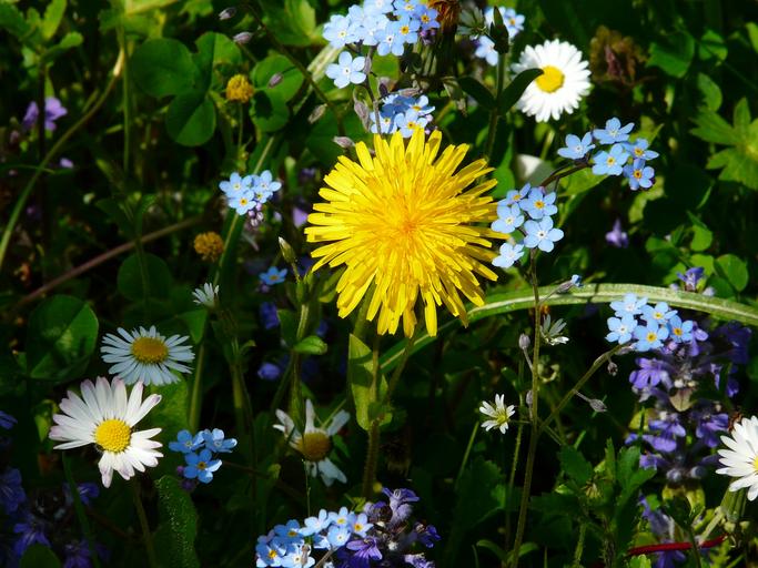 Keywords: meadow dandelion wildflowers forget me not daisy