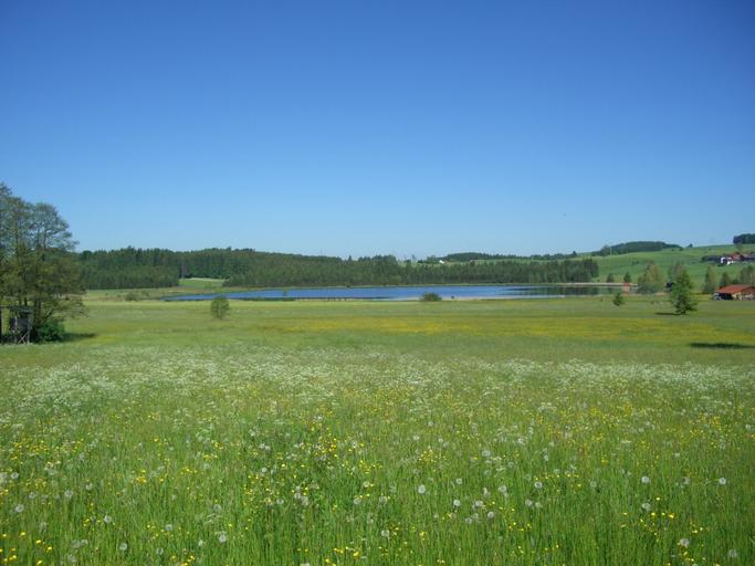 Keywords: meadow flowers bloom grass green attlesee allgäu sky blue nesselwang