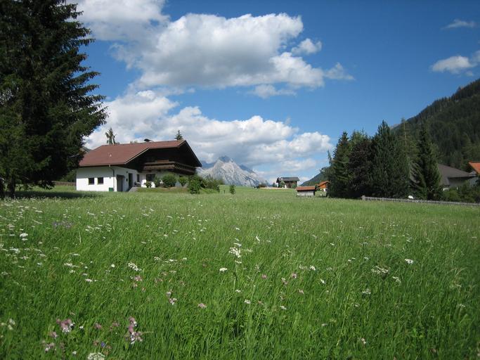 Keywords: meadow home nature clouds field landscape