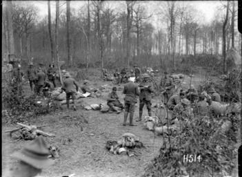 Keywords: blackandwhite monochrome outdoor black and white New Zealand soldiers in the transport lines having a meal break in a wood near Louvencourt, France. Photograph taken 21 April 1918 by Henry Armytage Sanders. Inscriptions: Inscribed - Photographer's title on negative -bottom right: H514. Quantity: 1 b&w original negative(s). Physical Description: Dry plate glass negative 4.75 x 6.5 inches Meal time for New Zealanders in the transport lines, Louvencourt. Royal New Zealand Returned and Services' Association :New Zealand official negatives, World War 1914-1918. Ref: 1/2-013132-G. Alexander Turnbull Library, Wellington, New Zealand. natlib.govt.nz/records/22683333 New Zealand soldiers in the transport lines having a meal break in a wood near Louvencourt, France. Photograph taken 21 April 1918 by Henry Armytage Sanders. Inscriptions: Inscribed - Photographer's title on negative -bottom right: H514. Quantity: 1 b&w original negative(s). Physical Description: Dry plate glass negative 4.75 x 6.5 inches Meal time for New Zealanders in the transport lines, Louvencourt. Royal New Zealand Returned and Services' Association :New Zealand official negatives, World War 1914-1918. Ref: 1/2-013132-G. Alexander Turnbull Library, Wellington, New Zealand. natlib.govt.nz/records/22683333 |