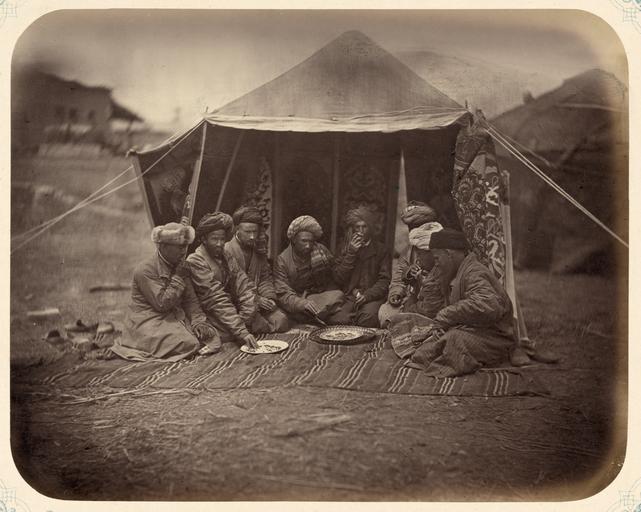 Keywords: Meals of Central Asians. Meal of Settled Inhabitants WDL11118.png Artwork ru Кун Александ Людвигович 1840 1888 гг fr Kun Aleksandr L 1840-1888 en Kun Aleksandr L 1840-1888 zh 亚历山大·L· ,1840-1888 年 pt Kun Aleksandr L 1840-1888 ar كُن، ألكسندر ل ، 1840-1888 es Kun Aleksandr L 1840-1888 ru Еда жителей С едней Азии Оседлые жители за едой fr Repas d'habitants d'Asie Centrale Repas d'habitants sédentaires en Meals of Central Asians Meal of Settled Inhabitants zh 中亚 区的饮食:常住居民的膳食 pt Refeições dos povos da Ásia Central Refeição dos habitantes instalados ar وجبات سكان وسط آسيا وجبة السكان المقيمين ru Эта фотог афия входит в этног афическую часть <em> Ту кестанского альбома </em><em></em>  всесто оннего исследования Цент альной Азии п едп инятого после того как в 1860-х годах в егионе установилось господство Российской импе ии Альбом созданный по аспо яжению гене ала Константина Пет овича фон Кауфмана 1818 1882 годы пе вого гене ал-губе нато а оссийского Ту кестана состоит из четы ех частей в шести томах «Часть а хеологическая» два тома «Часть этног афическая» два тома «Часть п омысловая» один том и «Часть исто ическая» один том Основным составителем альбома был оссийский востоковед Александ Людвигович Кун аботавший совместно с иколаем Венедиктовичем Богаевским В альбоме п едставлено около 1200 фотог афий а также а хитекту ные планы аква ельные исунки и ка ты «Часть этног афическая» включает в себя 491отдельную  фотог афию на 163 листах а фотог афиях изоб ажены п едставители азличных на одов егиона листы 1 33 повседневная жизнь и итуалы листы 34 91 а также виды де евень и го одов уличные то говцы и комме ческая деятельность листы 92 163 <br>Еда и напитки; Этног афические фотог афии; Г упповые по т еты; Фотог афические исследования; По т етные фотог афии; Тю кские на оды fr Cette photographie est extraite de la partie ethnographique de l'<em>Album du Turkestan</em> étude visuelle complète de l'Asie centrale entreprise après que l'Empire russe prit le contrôle de la région dans les années 1860 Commandé par le général Konstantin Petrovich von Kaufman 1818 1882 premier gouverneur général du Turkestan russe l'album est composé de six volumes en quatre parties  la partie archéologique deux volumes la partie ethnologique deux volumes la partie sur les métiers un volume et la partie historique un volume L'album fut essentiellement compilé par l'orientaliste russe Aleksandr L  Kun assisté de Nikolai V  Bogaevskii Il comporte près de 1200 photographies et inclut également des plans architecturaux des dessins à l'aquarelle et des cartes La partie ethnographique compte 491 photographies sur 163 planches montrant des individus des différentes peuplades de la région planches 1 à 33 des scènes de la vie quotidienne et des rites planches 34 à 91 ainsi que des vues de villages et de villes de vendeurs ambulants et d'activités commerciales planches 92 à 163 <br>Gastronomie et boissons; Photographies ethnographiques; Portraits de groupe; Inventaires photographiques; Portraits photographiques; Peuples turciques en This photograph is from the ethnographical part of <em>Turkestan Album</em><em> </em>a comprehensive visual survey of Central Asia undertaken after imperial Russia assumed control of the region in the 1860s Commissioned by General Konstantin Petrovich von Kaufman 1818 82 the first governor-general of Russian Turkestan the album is in four parts spanning six volumes Archaeological Part two volumes ; Ethnographic Part two volumes ; Trades Part one volume ; and Historical Part one volume The principal compiler was Russian Orientalist Aleksandr L Kun who was assisted by Nikolai V Bogaevskii The album contains some 1 200 photographs along with architectural plans watercolor drawings and maps The Ethnographic Part includes 491 individual photographs on 163 plates The photographs show individuals representing the different peoples of the region Plates 1 33 ; daily life and rituals Plates 34 91 ; and views of villages and cities street vendors and commercial activities Plates 92 163 <br>Eating and drinking; Ethnographic photographs; Group portraits; Photographic surveys; Portrait photographs; Turkic peoples zh 这张照片出自<em> 其斯 相册 </em><em> </em>的民族部分,该相册是俄罗斯 国 19 世纪 60 年代取得中亚控制 后, 手制 的 部针对该 区的综合 图像调查记录 相册由俄罗斯驻 其斯 (俄罗斯 国中亚属 的名称)首任 康斯 丁·彼得罗维奇·凡· 夫曼(Konstantin Petrovich von Kaufman,1818 82 年)将军赞助完成,共分六卷,四个部分: 古部分 (两卷); 民族部分 (两卷); 贸易部分 ( 卷)和 历史部分 ( 卷) 相册的主要编纂人是俄罗斯 方学 亚历山大·L· Aleksandr L Kun 亚历山大是 尼可莱·V·柏盖维斯基 Nikolai V Bogaevskii 的协助下完成相册的编纂 相册共含 1200 张照片,另 建筑