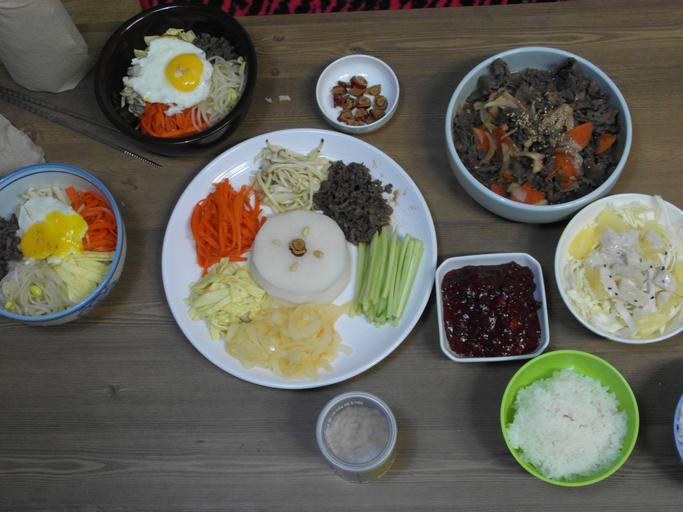 Keywords: meals south korea kujeolpan bibimbap kitchen table