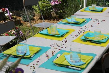 Keywords: meals summer picnic blue green outdoor plate restaurant dessert pause holiday eating out