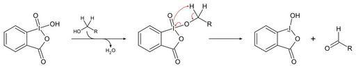 | Keywords: Mechanism IBX-Oxidation.svg Mechanismus der Oxidation eines primären Alkohols zum entsprechenden Aldehyd mit Iodoxybenzoesäure IBX Mechanism of the oxidation of a primary alcohol to the corresponding aldehyde with 2-iodoxybenzoic acid IBX Own 2010-02-24 Sponk <span class signature-talk >talk</span> PD-chem w en File IBXmechanism gif Organic oxidations Reaction mechanisms |