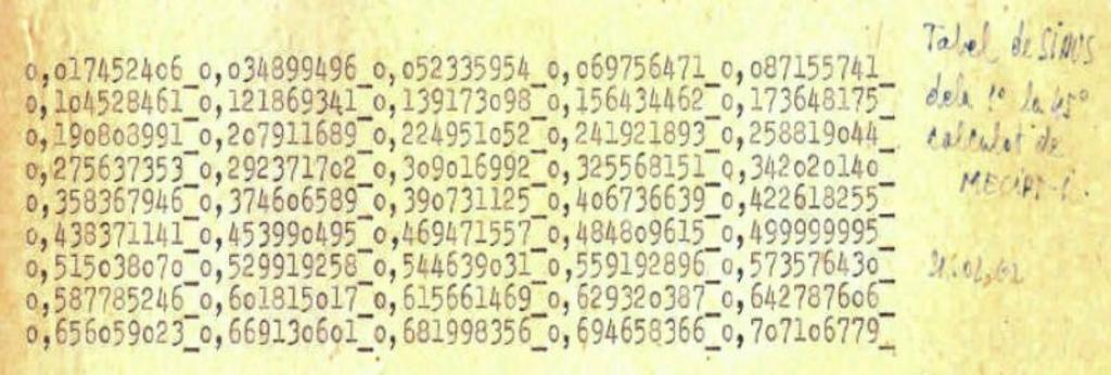 | Keywords: MECIPT-1 sinus table.jpg en Sinus table “ output of MECIPT-1 test code ro Tabelă sinus “ rezultatele programului de testare MECIPT-1 1962-02-21 Vasile Baltac http //www atic org ro/ktml2/files/uploads/MECIPT-IPT pdf MECIPT “ MaÈ™ină Electronică de Calcul a Institutului Politehnic din TimiÈ™oara “ Evocări È™i Documente SCIENAR Science art Symposium at the jubilee of MECIPT-1 CD TimiÈ™oara 2011 w ro Vasile Baltac other versions Custom license marker 2015 04 21 g the photographs of letters deeds documents of any kind technical drawings and other similar papers PD-RO-exempt Uploaded with UploadWizard MECIPT Computer printed papers |