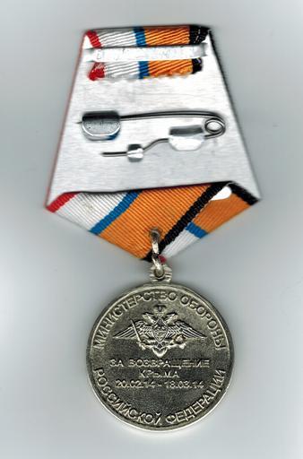| Keywords: Medal For the Return of Crimea revers full.png ru едаль «За возв ащение К ыма» еве с en Medal «For the return of the Crimea» revers 2015-07-03 own User Draa_kul scan ; Ministry of Defence Russia other versions Custom license marker 2015 07 06 PD-RU-exempt orders decorations and medals CC-zero Medal For the Return of Crimea Uploaded with UploadWizard |