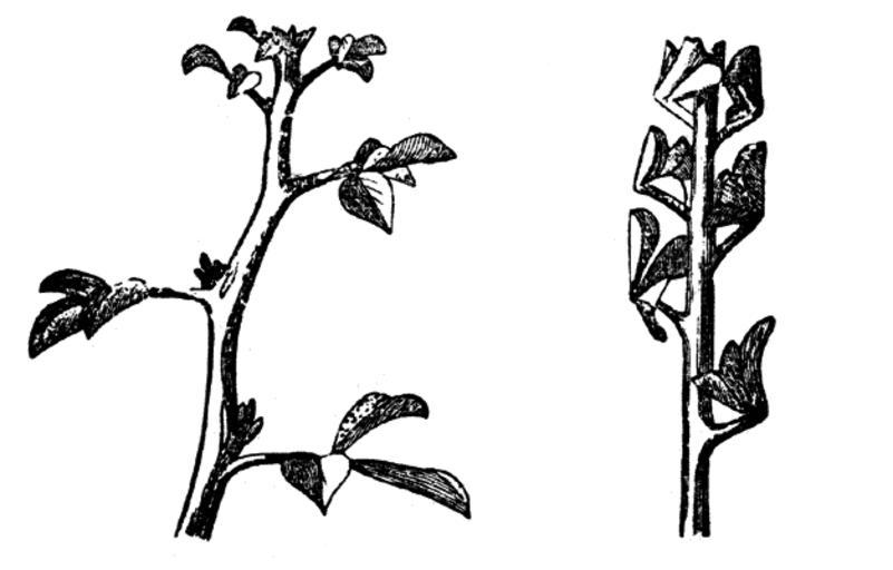 | Keywords: Medicago marina-linedrawing.png Sleep movements of Medicago marina Figure 139 from The Power of Movement in Plants scanned from original <br/> left Medicago marina leaves during the day right Medicago marina leaves asleep at night 1898 - New York D Appleton and Company Charles Darwin LL D F R S assisted by Francis Darwin PD-old-80 PD-US thumb left Original scan Medicago marina | ||||